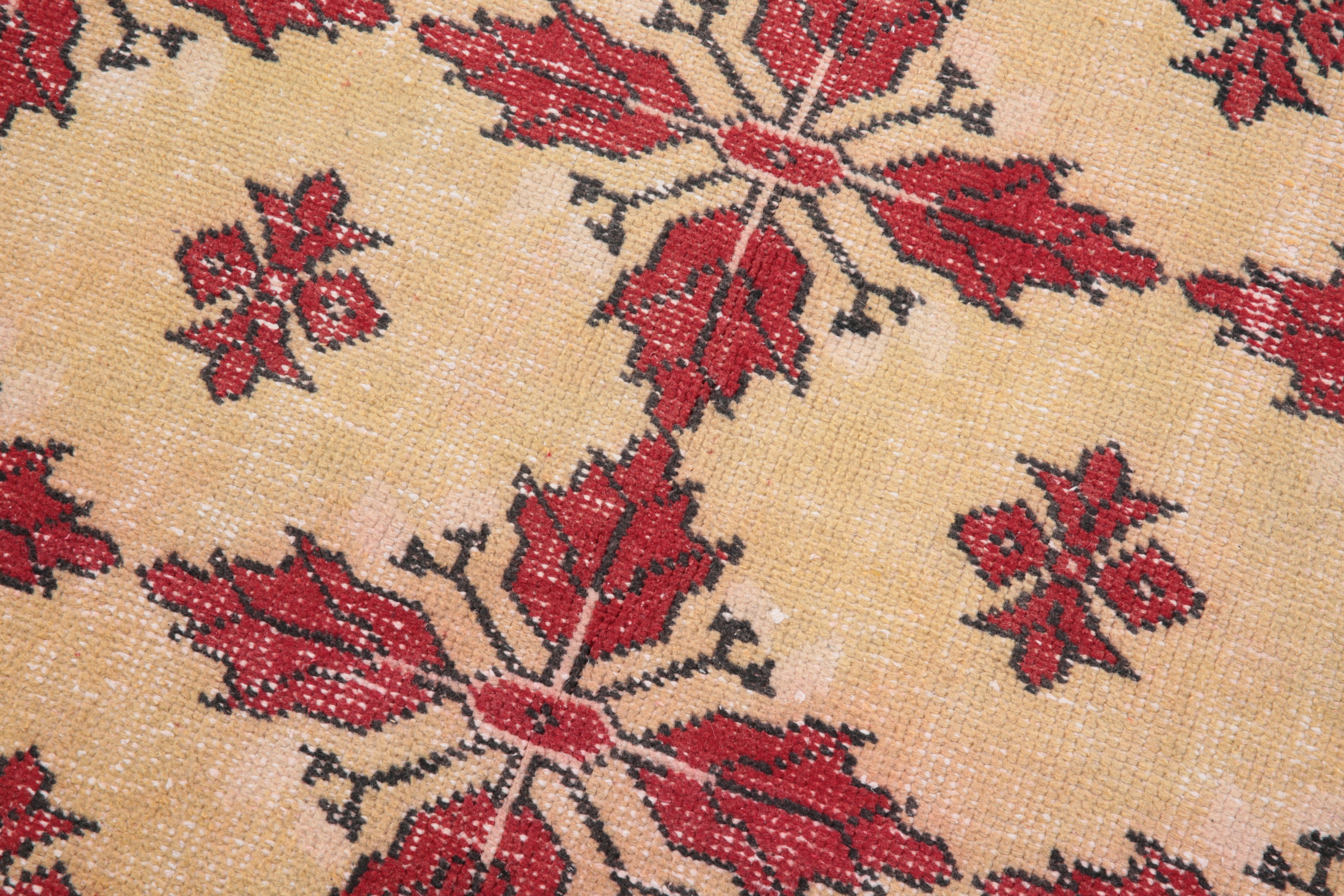 Vintage Red Turkish Rug 3'10" x 8'4" ft, Wool Geometric Rug