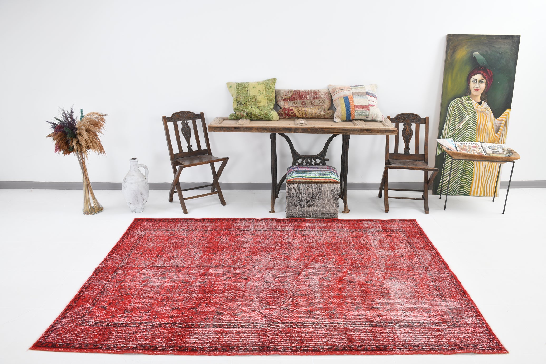 Turkish Vintage Distressed Area Rug 6'11" x 10'1" ft, Red