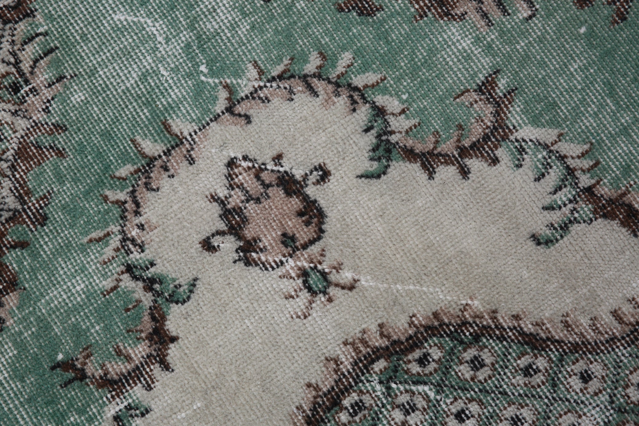 Turkish Vintage Distressed Rug 6'8" x 9'3" ft, Mint Green