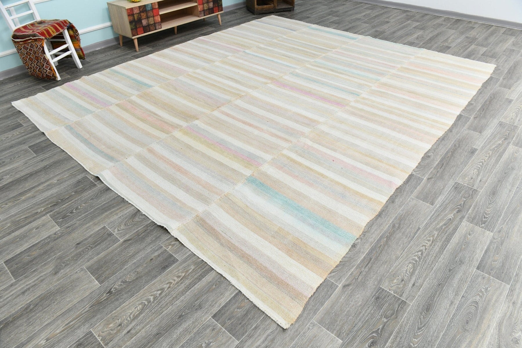 Make a statement with this stunning one-of-a-kind Turkish Hemp Ethnic Rug. Measuring 10'1" x 11'10" ft size (307 x 360 cm size), this handwoven piece boasts a bold color scheme and a pattern that's sure to turn heads. Handcrafted for unique craftsmanship, this product is perfect for any room or area of use in need of a statement piece. Please note that due to its vintage nature, there may be slight imperfections and signs of wear, which only add to its charm. Please refer to the product details for more information.