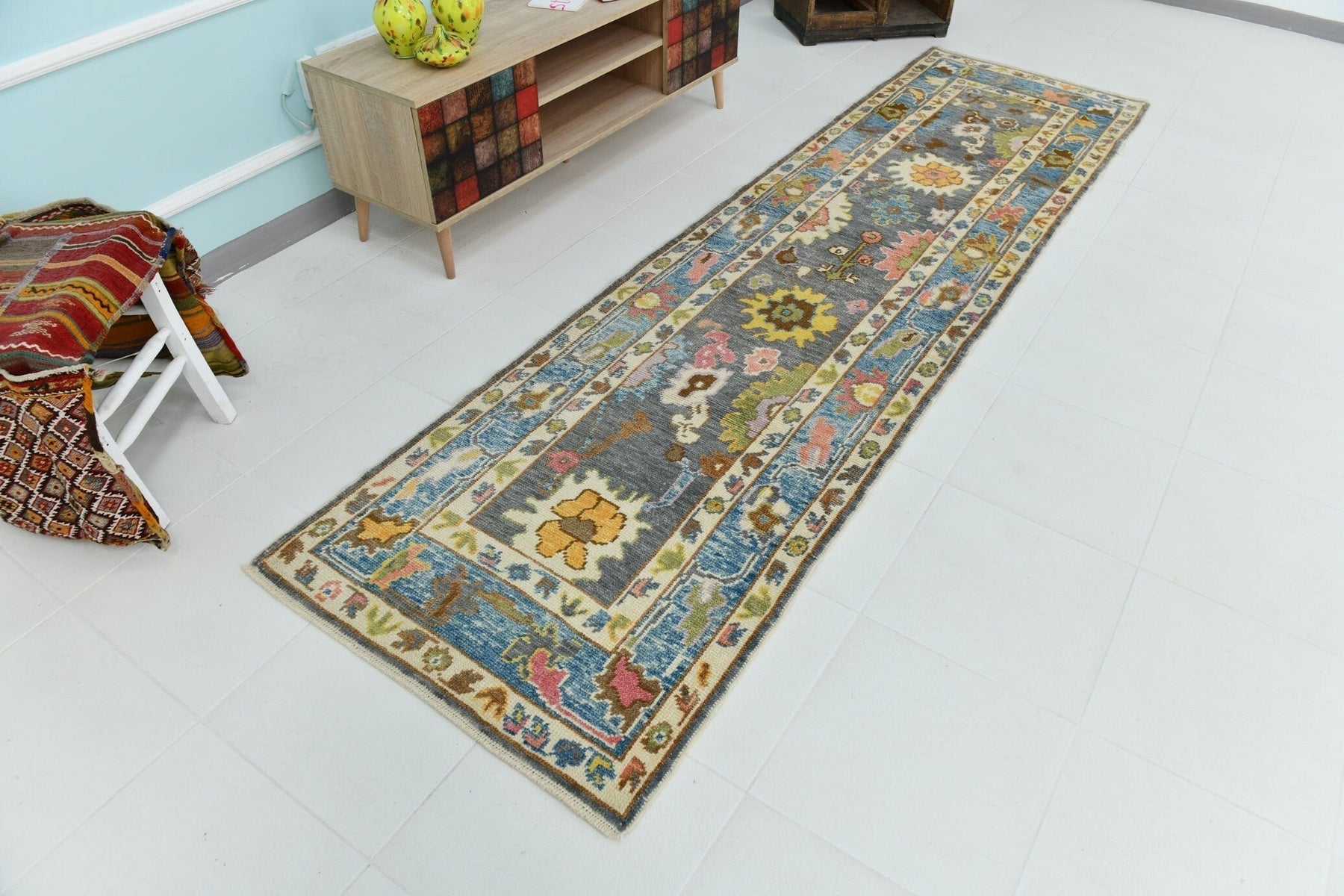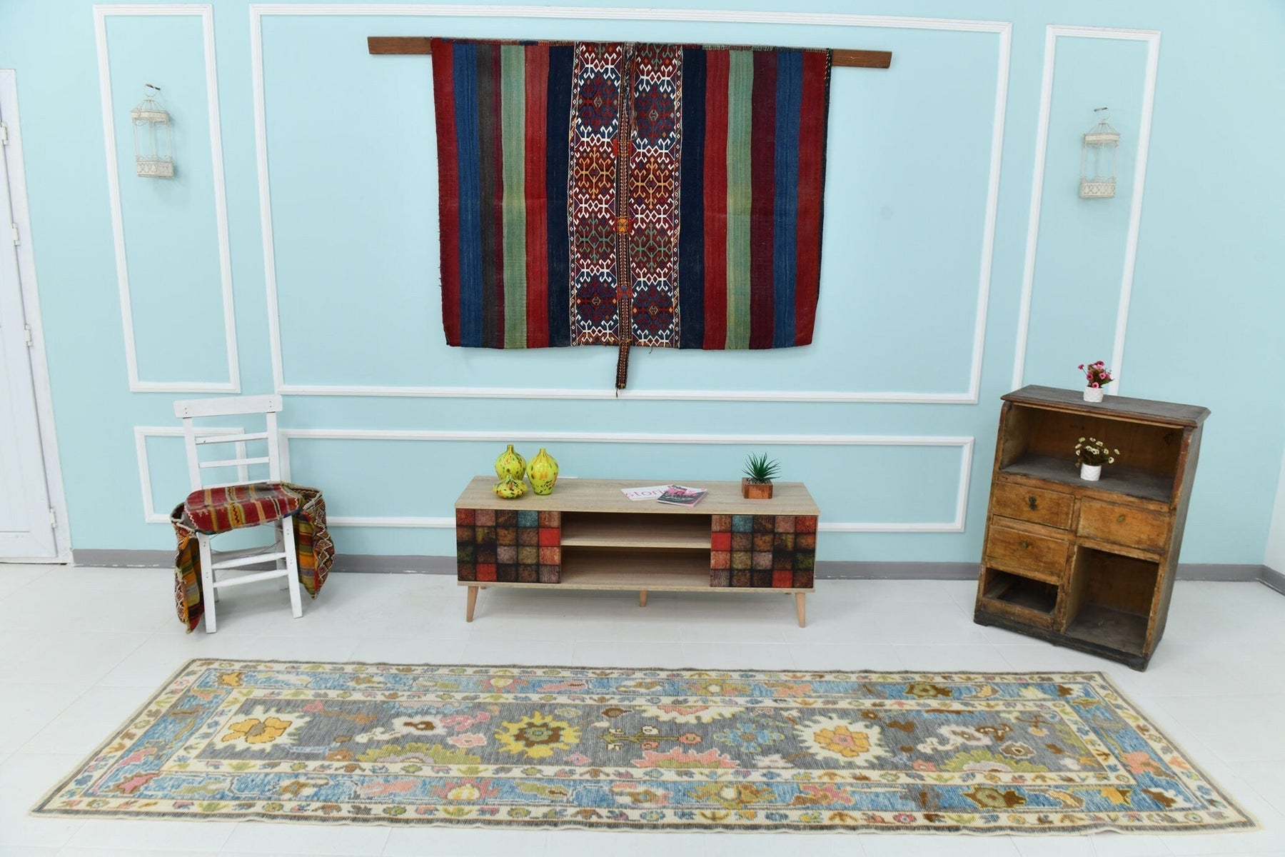 Looking for a statement piece to elevate your home decor? Look no further than this one-of-a-kind Vintage Oushak Rug. Handwoven for unique craftsmanship, this vintage beauty measures 2'11" x 10'9" ft size (90 x 328 cm size) and features a captivating color palette, accented by a Turkish-style pattern. The handmade nature of the product means that it may have some imperfections and signs of wear, but this only adds to its unique charm. Whether you want to enhance your living room, bedroom, or any other room or area of use, this product will impress. Please refer to the product details for more information.