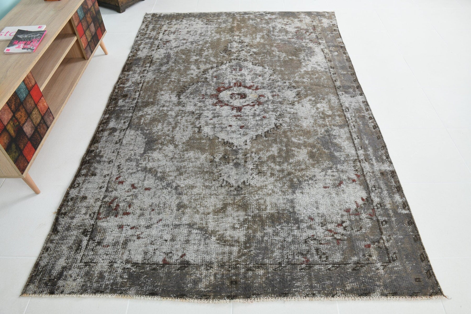 Turkish Vintage Distressed Area Rug 5'5" x 8'4", Smoky Gray