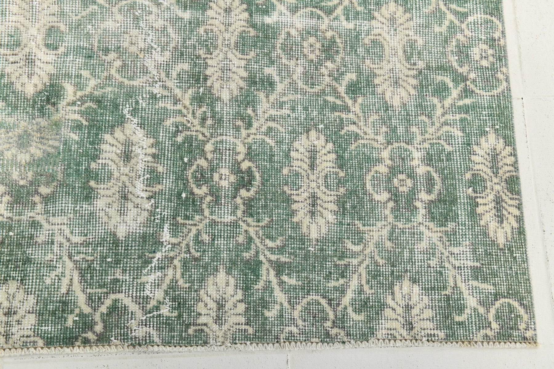 This one-of-a-kind Vintage Green Rug is a true masterpiece. Measuring 5'3" x 7'10" ft size (159 x 239 cm size), it features a beautiful color scheme and a pattern that highlights its unique design. Due to its handmade vintage nature, this product may have imperfections and signs of wear, which only adds to its character and charm. Handwoven for exceptional craftsmanship, it's perfect for enhancing the ambiance of any room or area of use. Please see the product details for more information.