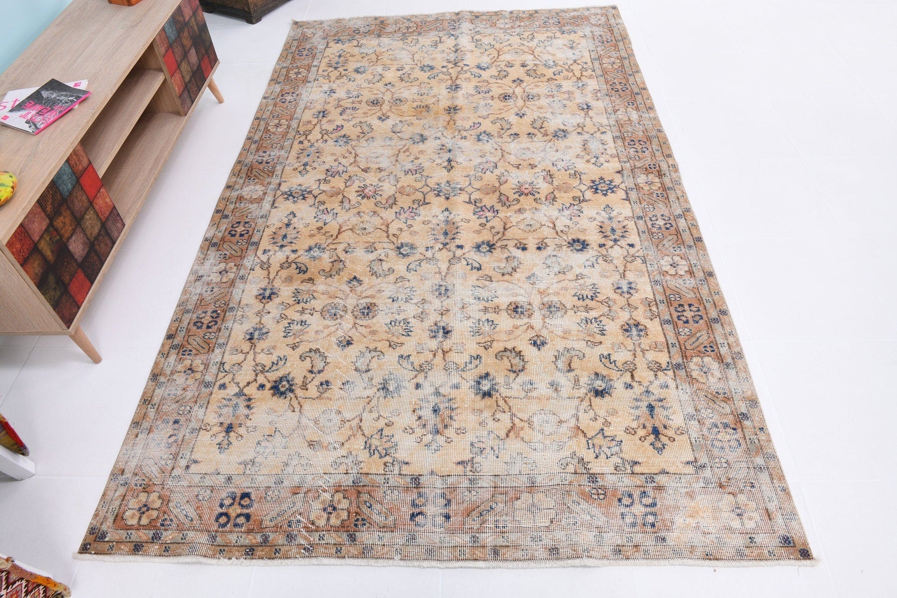 Looking for a unique piece to add to your collection? Look no further than this one-of-a-kind Vintage Rug. With dimensions of 5'3" x 8'7" ft size (160 x 262 cm size), this handcrafted product features a gorgeous color palette and a pattern that's truly one-of-a-kind. Handwoven for unique craftsmanship, this piece is perfect for any room or area of use in need of a pop of texture and color. Please note that due to its vintage nature, there may be slight imperfections and signs of wear, which only add to its character. Please refer to the product details for more information.