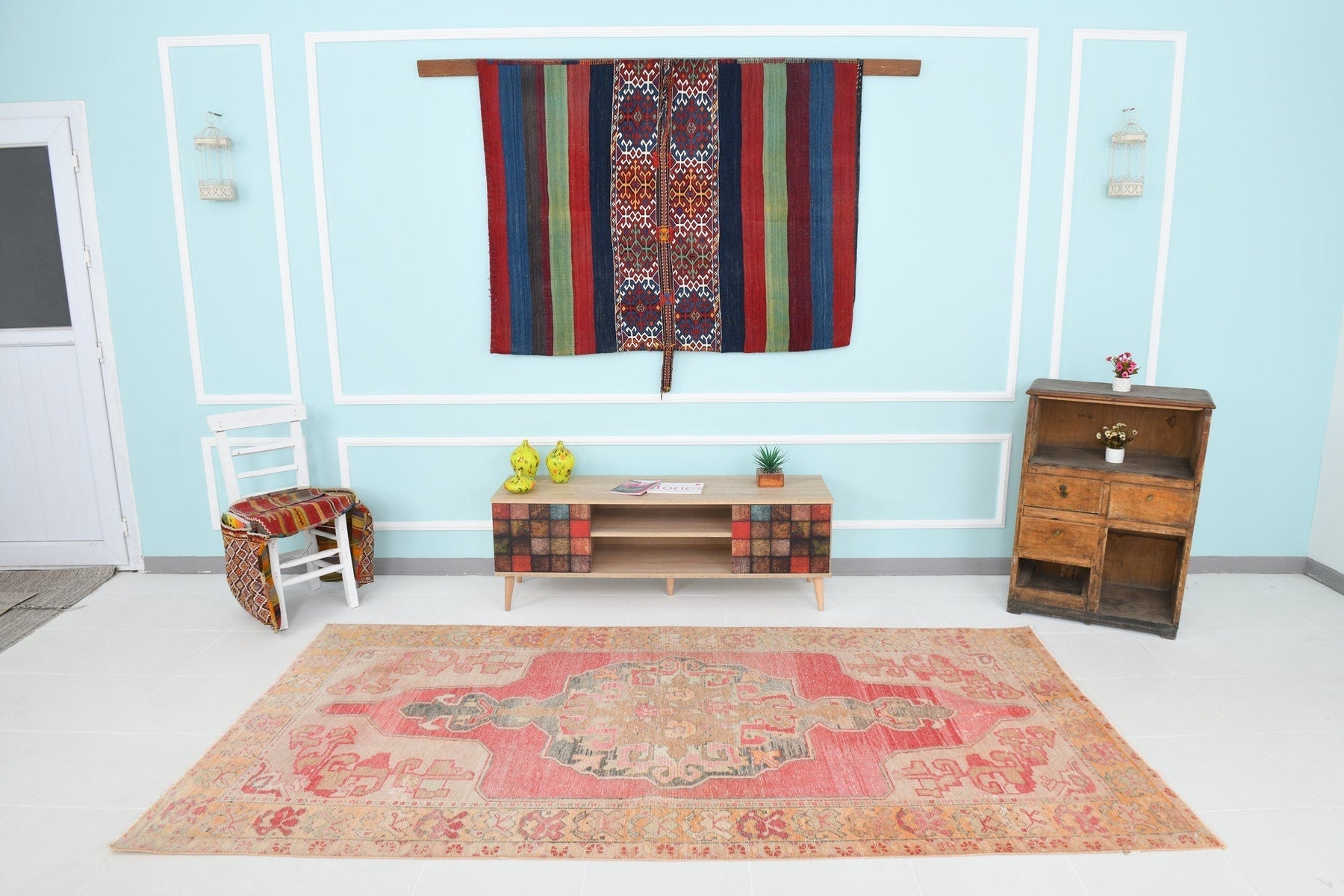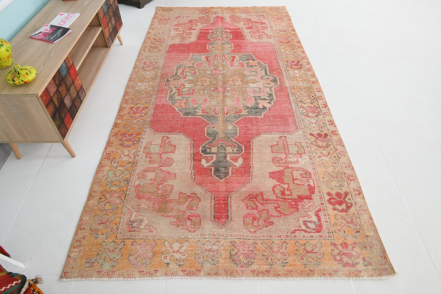 Looking for a unique addition to your home decor? Check out this one-of-a-kind Vintage Rug. Measuring 4'10" x 9'4" ft size (147 x 285 cm size), this handcrafted product features a stunning color combination and a pattern that's both modern and chic. Handwoven for unique craftsmanship, this piece is perfect for adding texture and interest to any room or area of use. Please note that due to its vintage nature, there may be slight imperfections and signs of wear, which only add to its character. Please check the product details for more information.