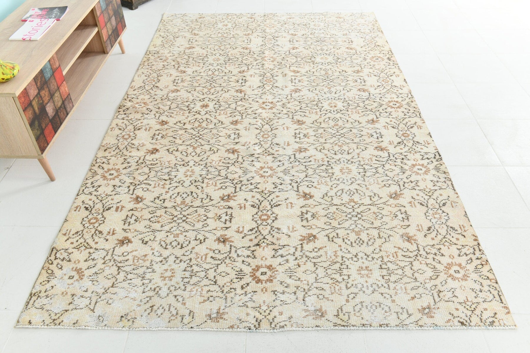 This one-of-a-kind Vintage Rug is a true masterpiece. Measuring 5'7" x 9'2" ft size (171 x 280 cm size), it features a beautiful color scheme and a pattern that highlights its unique design. Due to its handmade vintage nature, this product may have imperfections and signs of wear, which only adds to its character and charm. Handwoven for exceptional craftsmanship, it's perfect for enhancing the ambiance of any room or area of use. Please see the product details for more information.