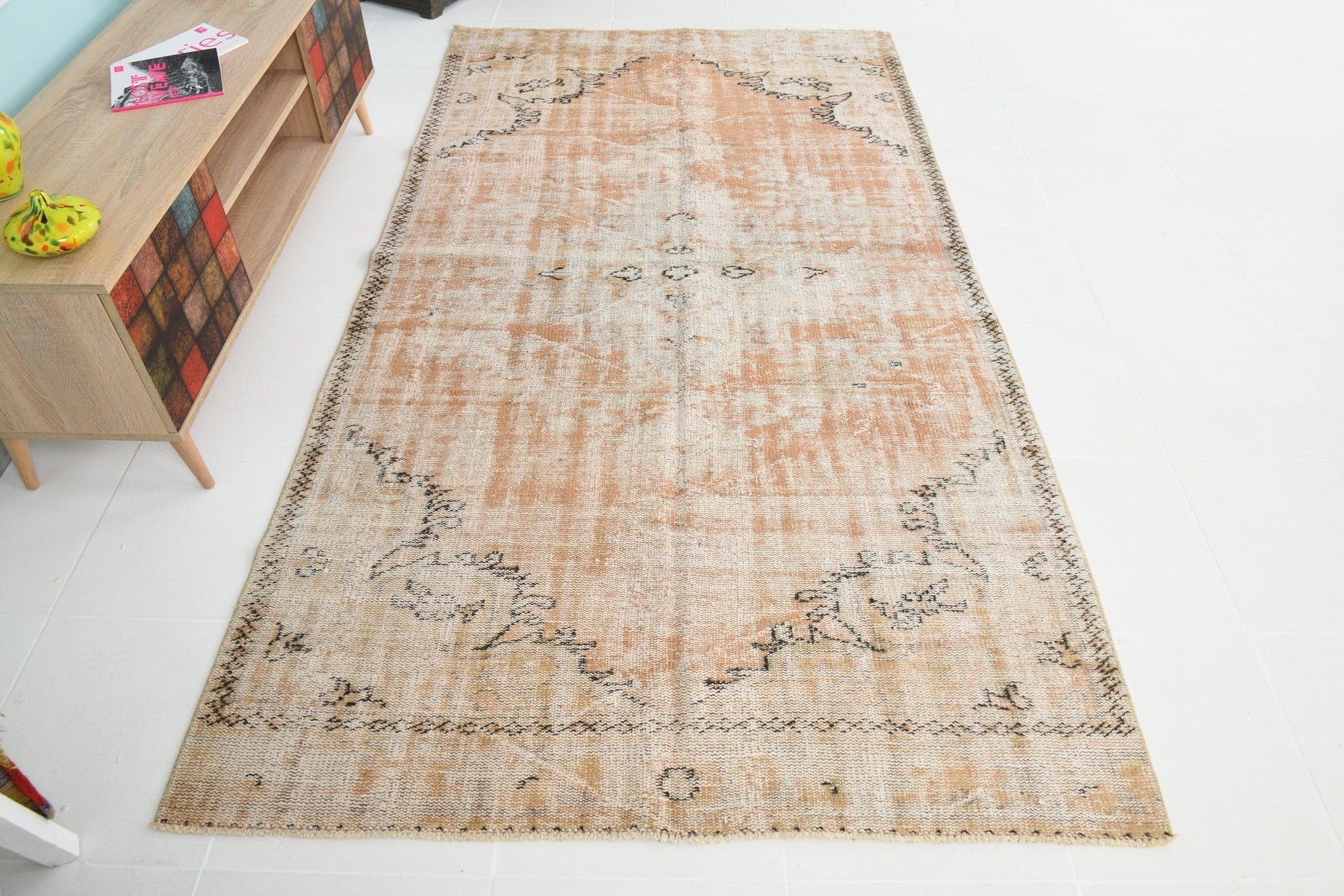Looking for a statement piece to elevate your home decor? Look no further than this one-of-a-kind Vintage Rug. Handwoven for unique craftsmanship, this vintage beauty measures 4'9" x 8'10" ft size (145 x 268 cm size) and features a captivating color palette, accented by a Turkish-style pattern. The handmade nature of the product means that it may have some imperfections and signs of wear, but this only adds to its unique charm. Whether you want to enhance your living room, bedroom, or any other room or area of use, this product will impress. Please refer to the product details for more information.