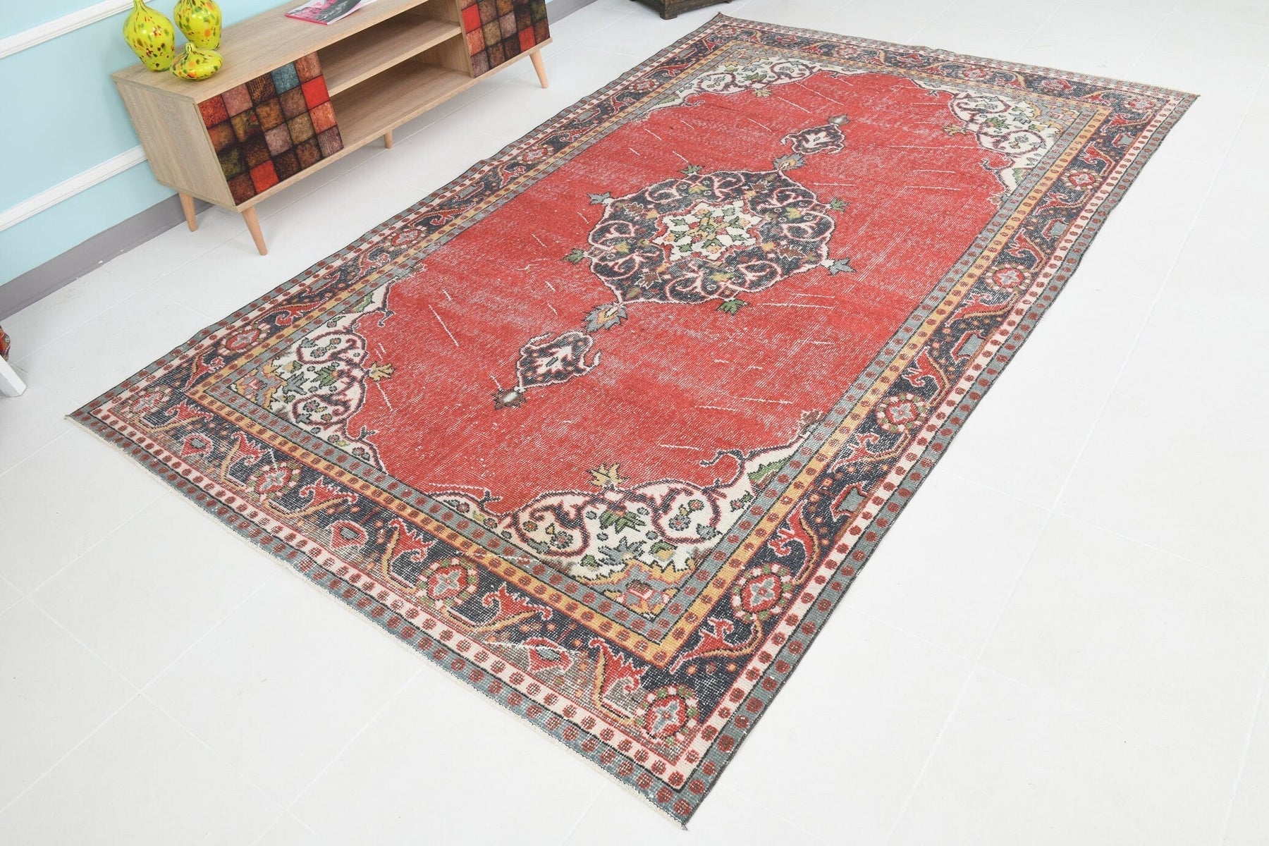 Looking for a unique addition to your home decor? Check out this one-of-a-kind Vintage Rug. Measuring 6'1" x 9'9" ft size (185 x 298 cm size), this handwoven beauty features a striking color scheme and pattern that adds visual interest. The vintage nature of the product means that it may have some imperfections and signs of wear, but we believe this only enhances its character. Handwoven for unique craftsmanship, this product is a great choice for any room or area of use. Be sure to check the product details for more information.