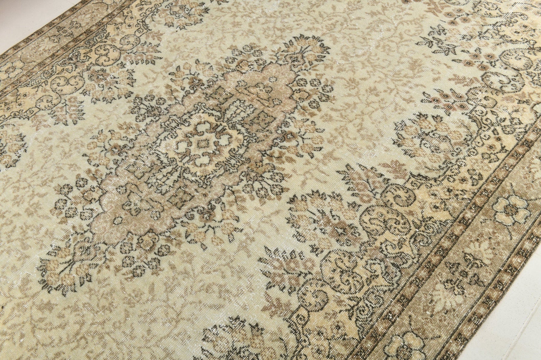 Elevate your space with this one-of-a-kind Vintage Rug. With dimensions of 6'6" x 8'3" ft size (198 x 252 cm size), this handcrafted product features a beautiful color scheme and a pattern that's sure to impress. Handwoven for unique craftsmanship, this piece is perfect for adding texture and interest to any room or area of use. Due to its vintage nature, there may be slight imperfections and signs of wear, which only add to its character. Please refer to the product details for more information.