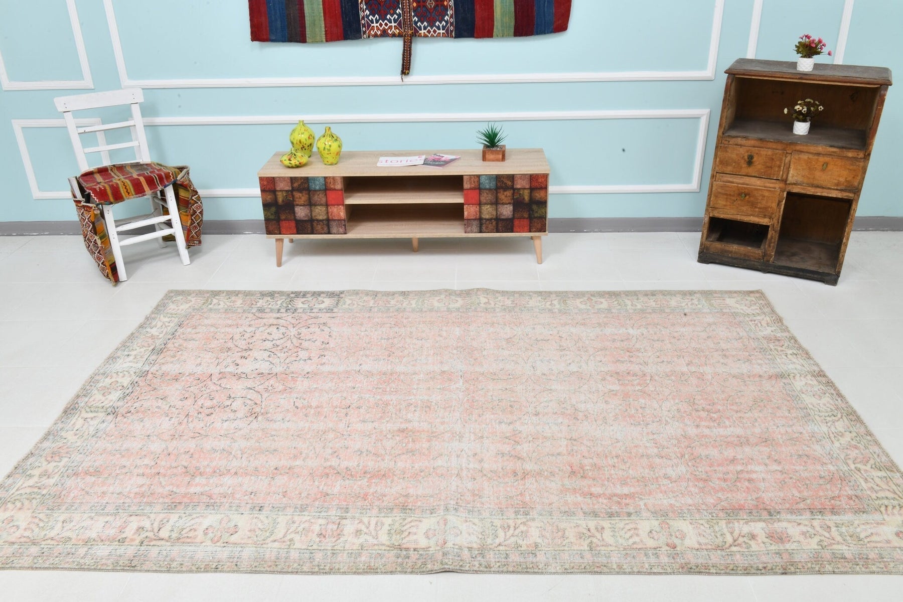Turkish Vintage Distressed Rug, 9'1" x 5'9" Blush Pink Area Rug