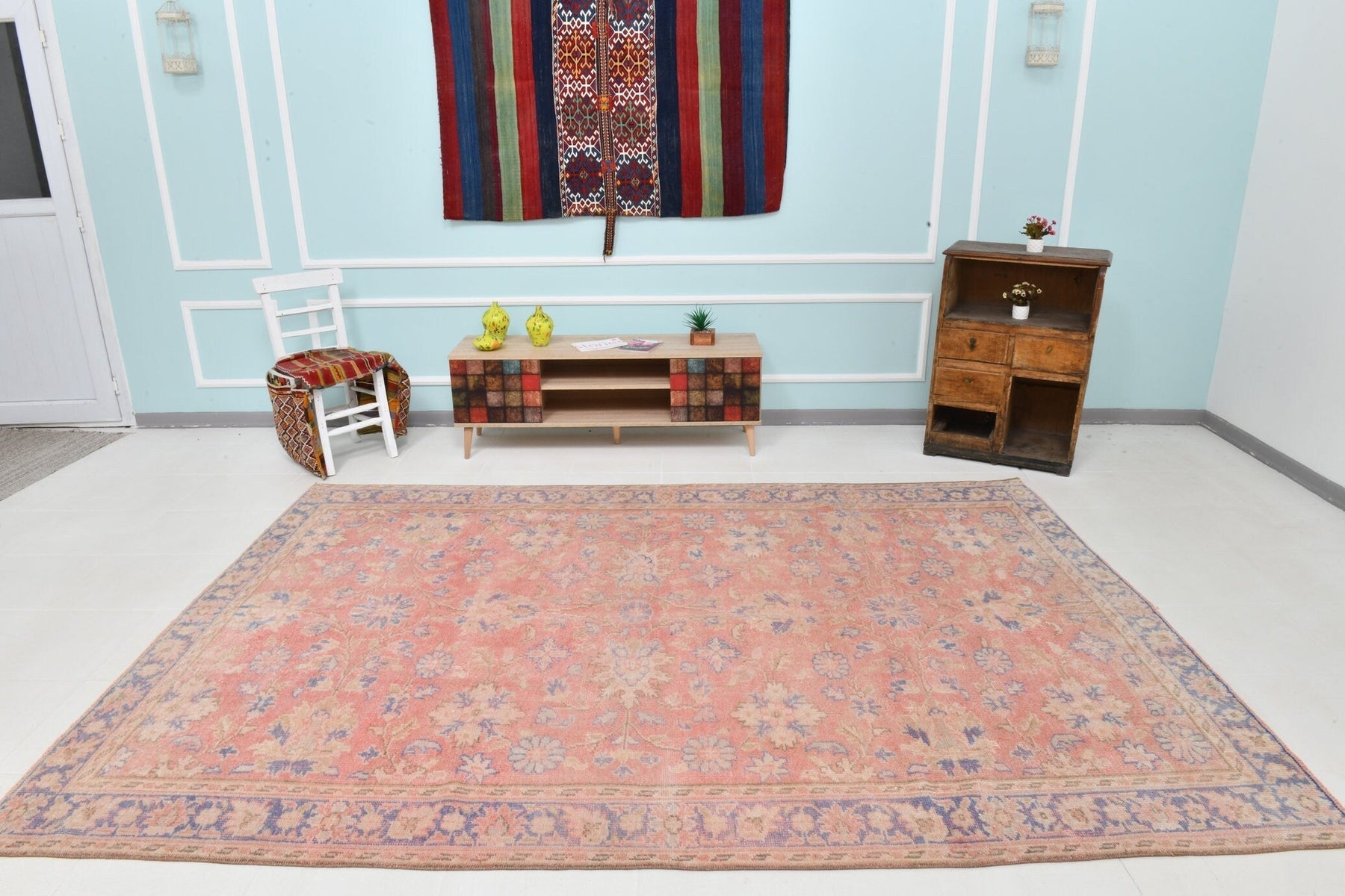 Make a statement with this stunning one-of-a-kind Vintage Rug. Measuring 7'1" x 10'3" ft size (215 x 312 cm size), this handwoven piece boasts a bold color scheme and a pattern that's sure to turn heads. Handcrafted for unique craftsmanship, this product is perfect for any room or area of use in need of a statement piece. Please note that due to its vintage nature, there may be slight imperfections and signs of wear, which only add to its charm. Please refer to the product details for more information.