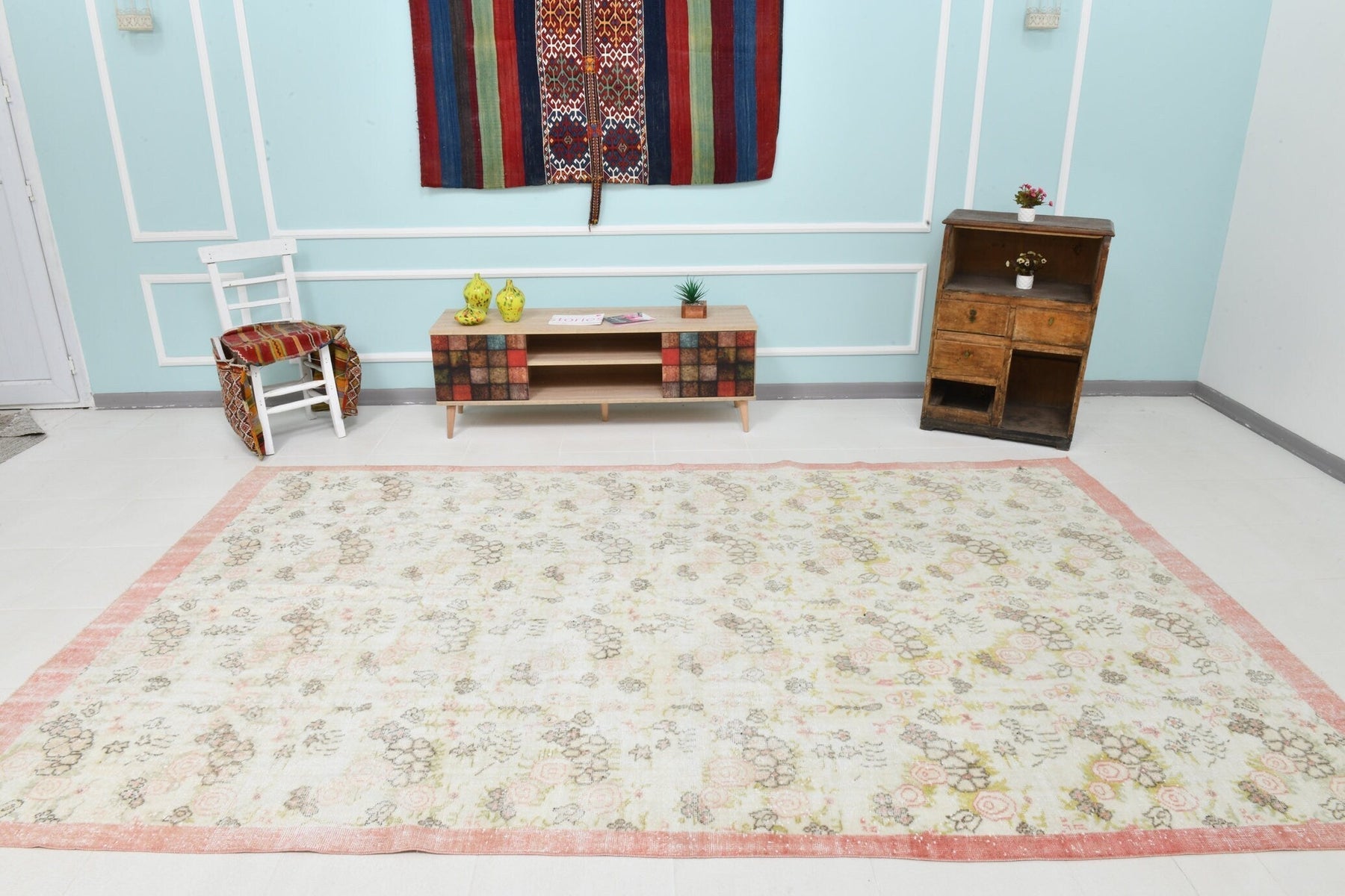 Bring a touch of history and personality into your home with this one-of-a-kind Vintage Rug. Handwoven for unique craftsmanship, this vintage beauty measures 6'10" x 11'3" ft size (208 x 343 cm size) and features a stunning color palette, accentuated by a vintage pattern. While it may exhibit some imperfections and signs of wear, we believe that these only enhance its charm and character. Ideal for any room or area of use in need of a distinctive statement piece. Please refer to the product details for more information.