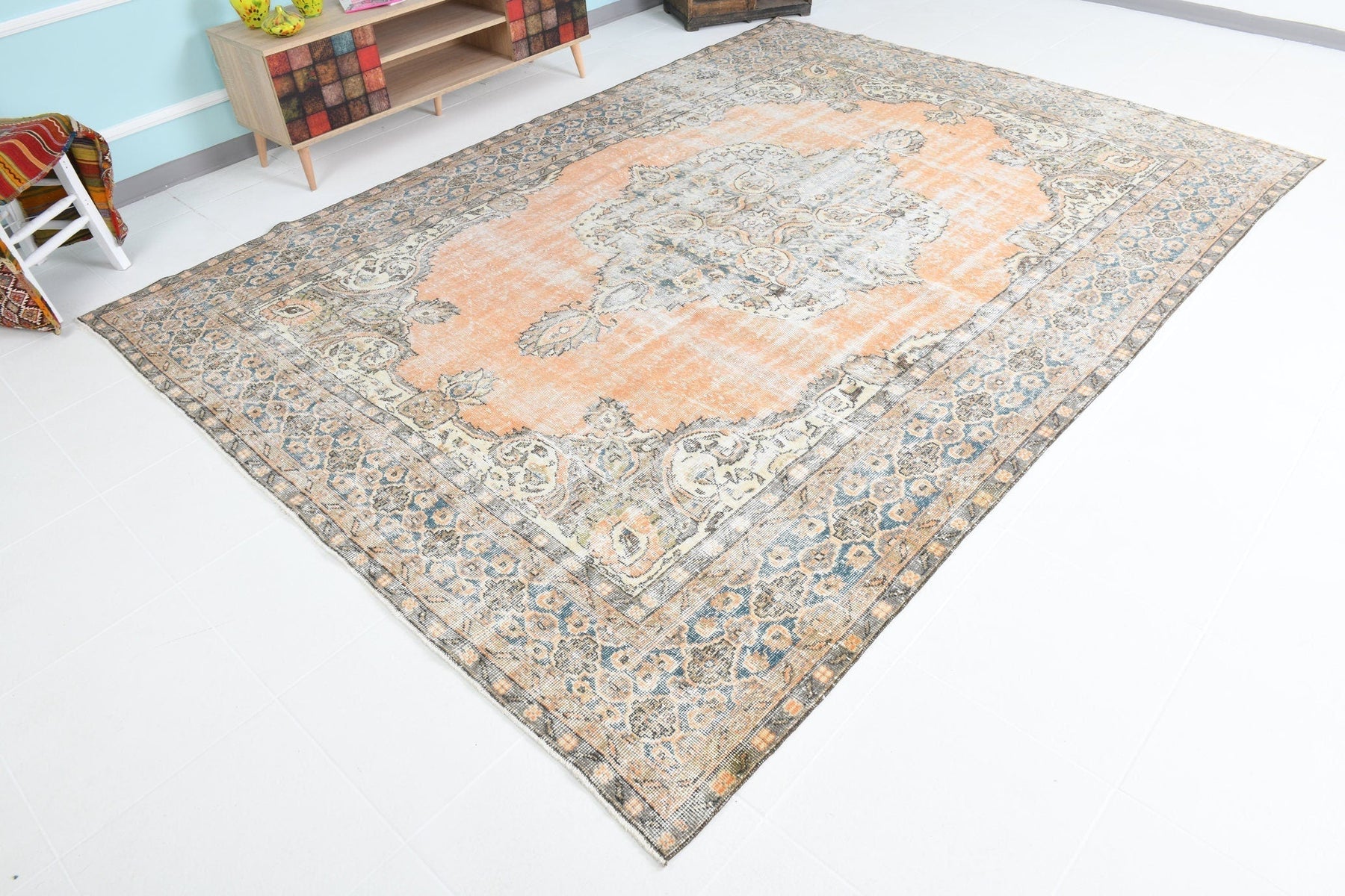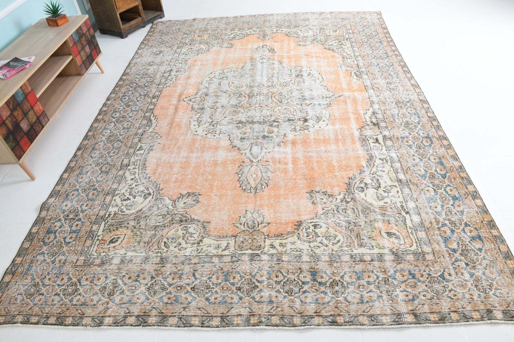 Elevate your space with this one-of-a-kind Vintage Rug. With dimensions of 7'11" x 11'1" ft size (242 x 338 cm size), this handcrafted product features a beautiful color scheme and a pattern that's sure to impress. Handwoven for unique craftsmanship, this piece is perfect for adding texture and interest to any room or area of use. Due to its vintage nature, there may be slight imperfections and signs of wear, which only add to its character. Please refer to the product details for more information.