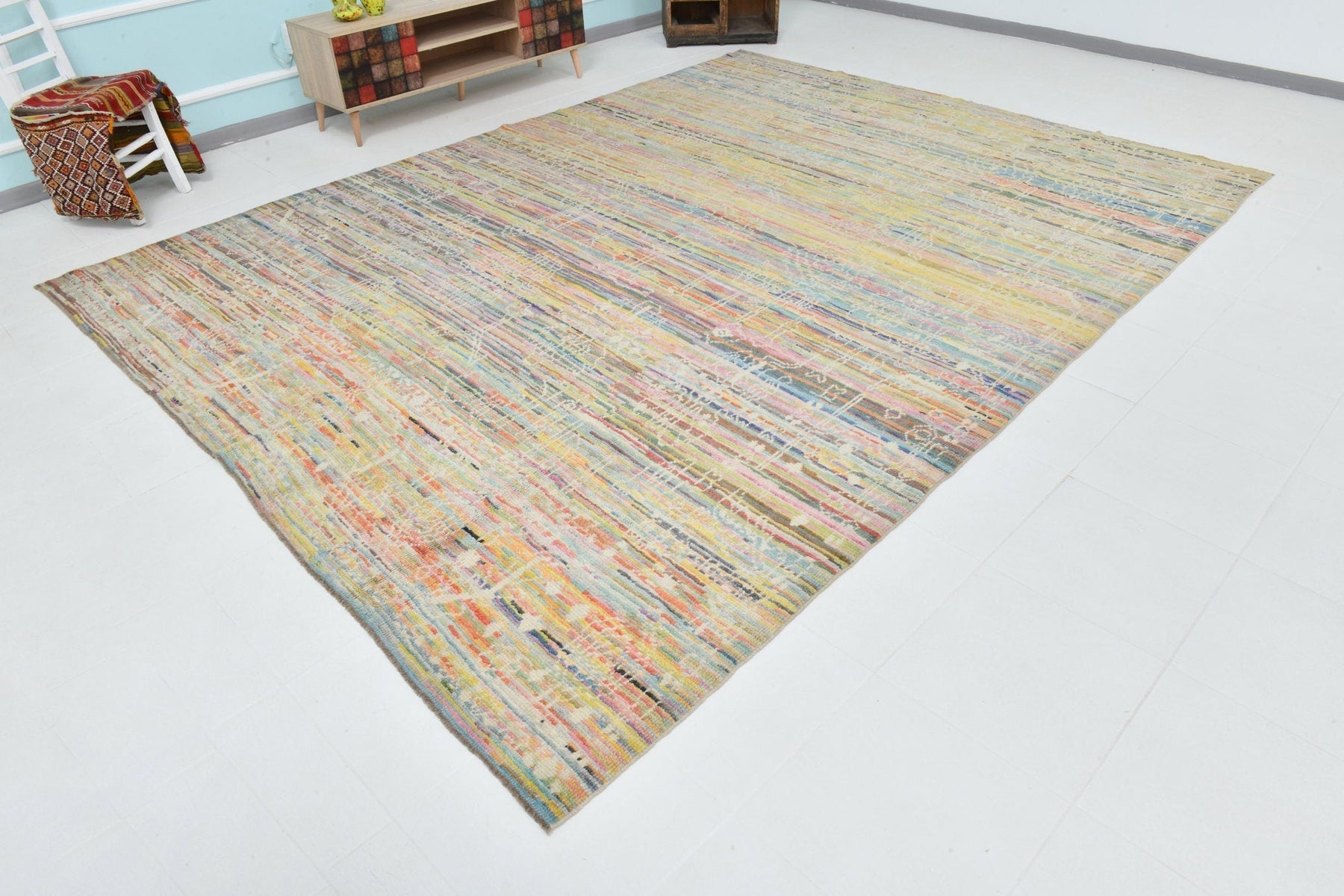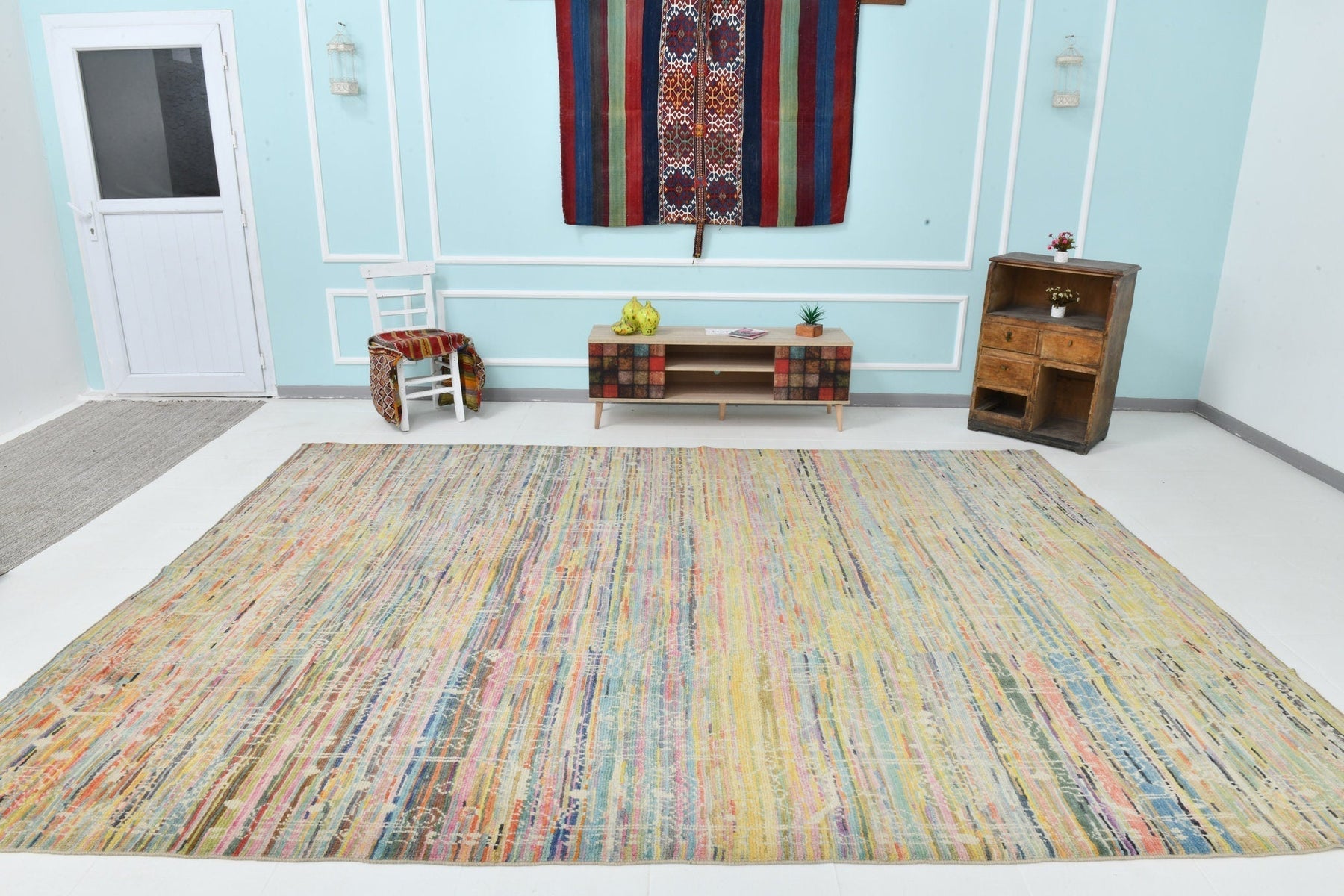 Looking for a unique piece to add to your collection? Look no further than this one-of-a-kind Vintage Oushak Rug. With dimensions of 9'3" x 12'4" ft size (283 x 376 cm size), this handcrafted product features a gorgeous color palette and a pattern that's truly one-of-a-kind. Handwoven for unique craftsmanship, this piece is perfect for any room or area of use in need of a pop of texture and color. Please note that due to its vintage nature, there may be slight imperfections and signs of wear, which only add to its character. Please refer to the product details for more information.