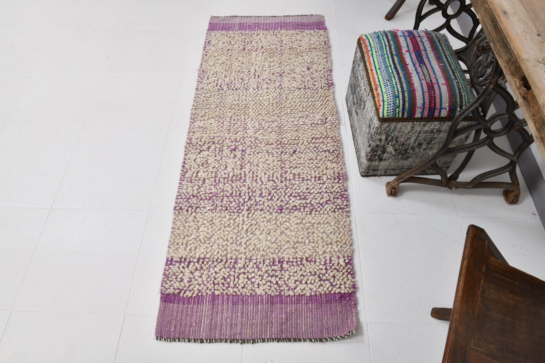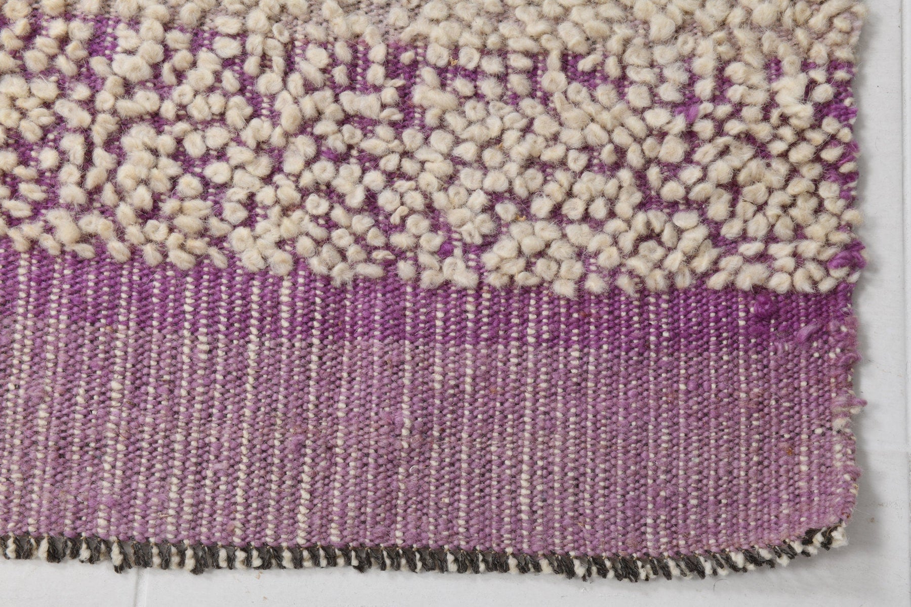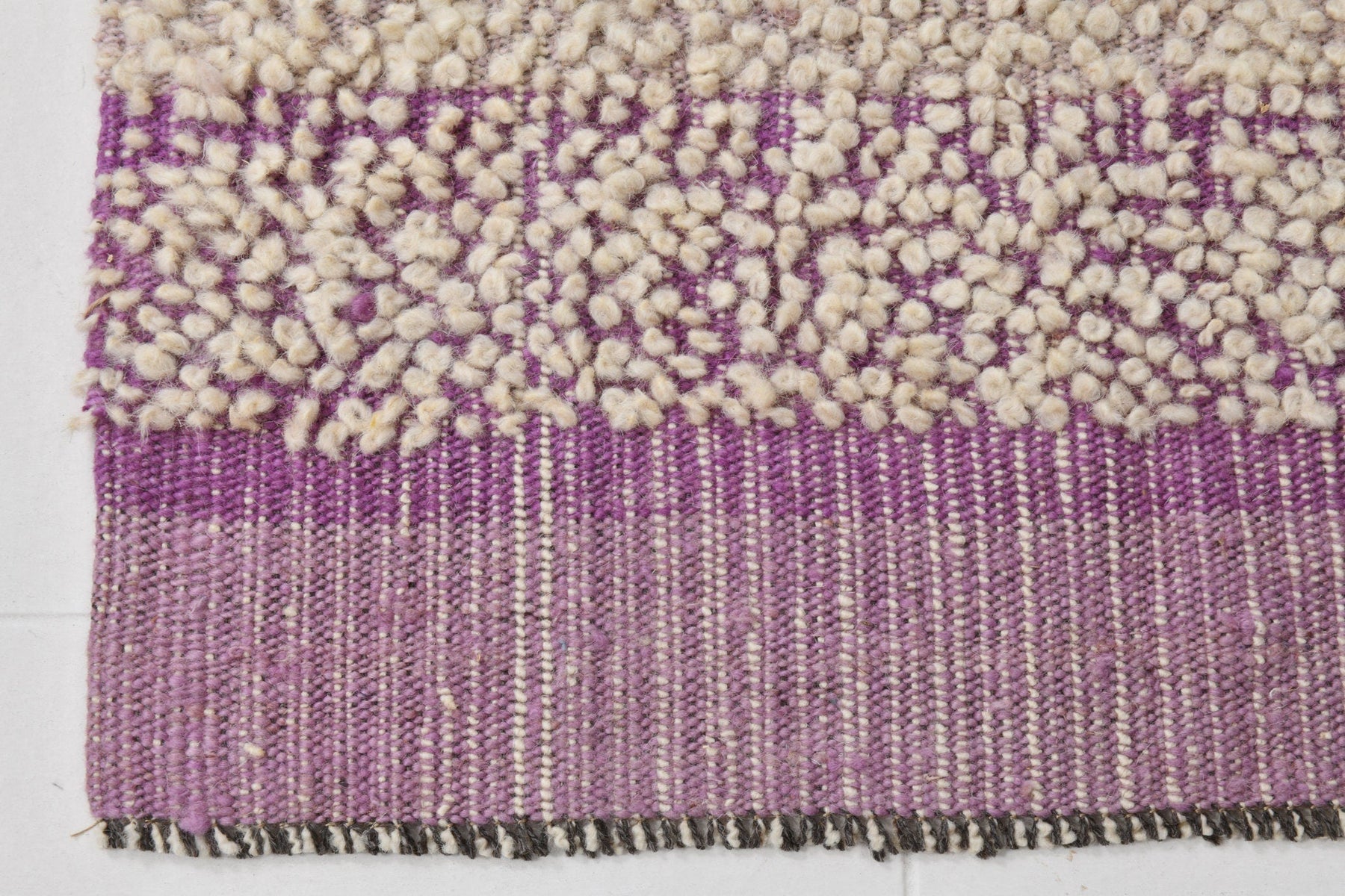 This is a newly made Modern Kilim Pompom, hand-woven by artisans within our company. It is created using the Hand Woven technique, offering a unique texture and design. It measures 2'3" x 5'10" ft size (68 x 178 cm size) and is made of %100 Wool. It carries the cultural richness of Anatolian regions and it features colors and patterns that suit contemporary fashion. Clean, well-formed, and ready for use.