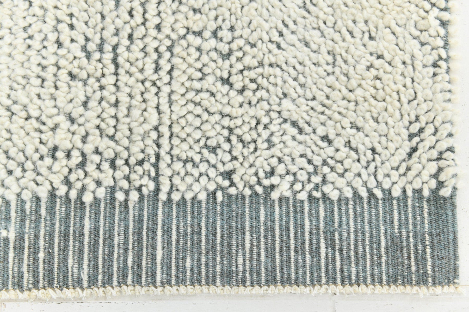 This is a newly made Modern Kilim Pompom, hand-woven by artisans within our company. It is created using the Hand Woven technique, offering a unique texture and design. It measures 4'6" x 6'6" ft size (136 x 199 cm size) and is made of %100 Wool. It carries the cultural richness of Anatolian regions and it features colors and patterns that suit contemporary fashion. Clean, well-formed, and ready for use.
