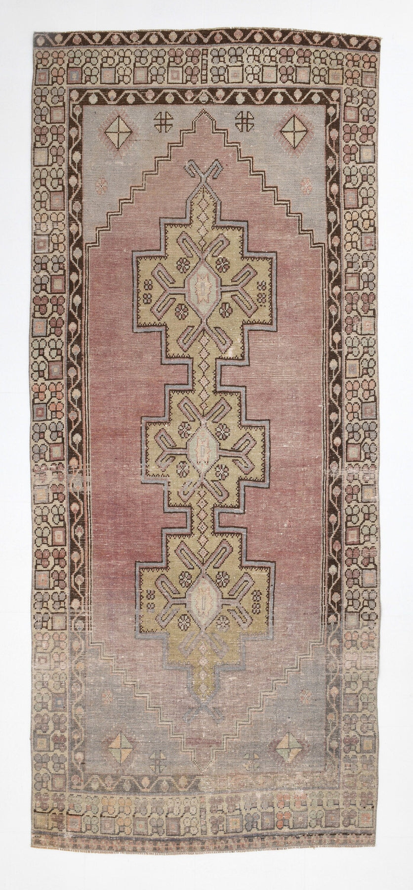 This is a hand-made, one of a kind Turkish Vintage Rug. It is meticulously crafted using the Hand Knotted technique, ensuring durability and intricate patterns. It measures 4'2" x 9'11" ft size (128 x 302 cm size) and is made of %50 Wool - %50 Cotton. Its origin is all regions of Anatolia and Estimated to have been produced between 1960 - 1970. Washed, cleaned, well-formed, and ready for use.