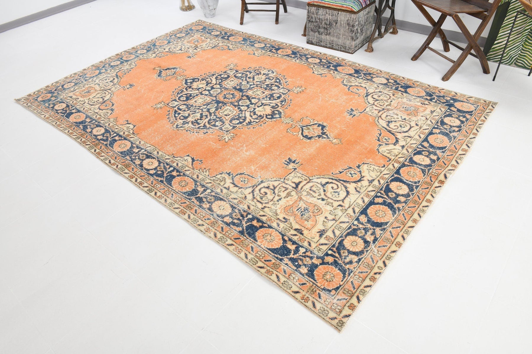 Turkish Vintage Rug 6'5" x 9'11" ft Terracota Ivory