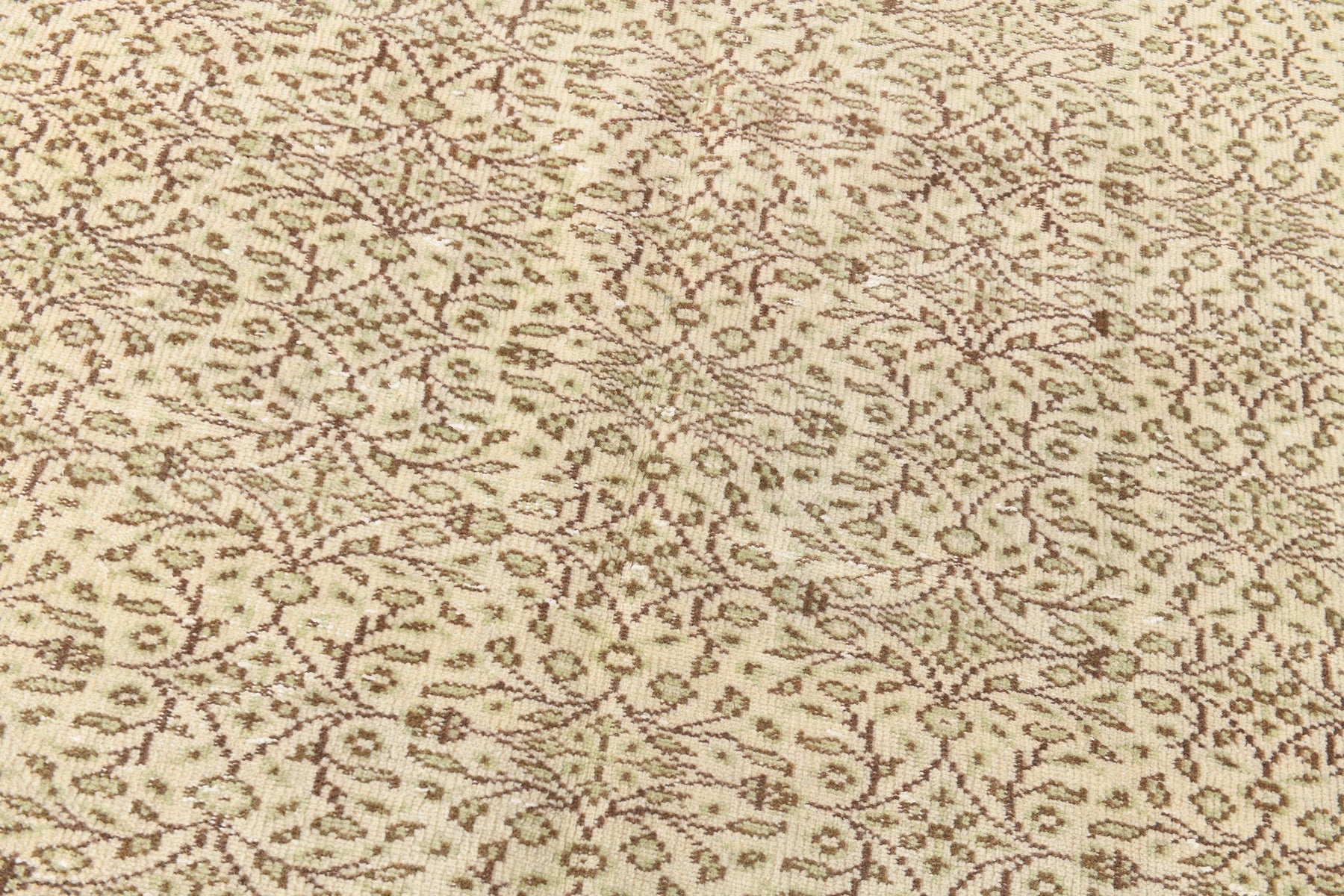 Colors: Predominantly ivory/beige for the main field, with subtle brown patterns and a light green border.