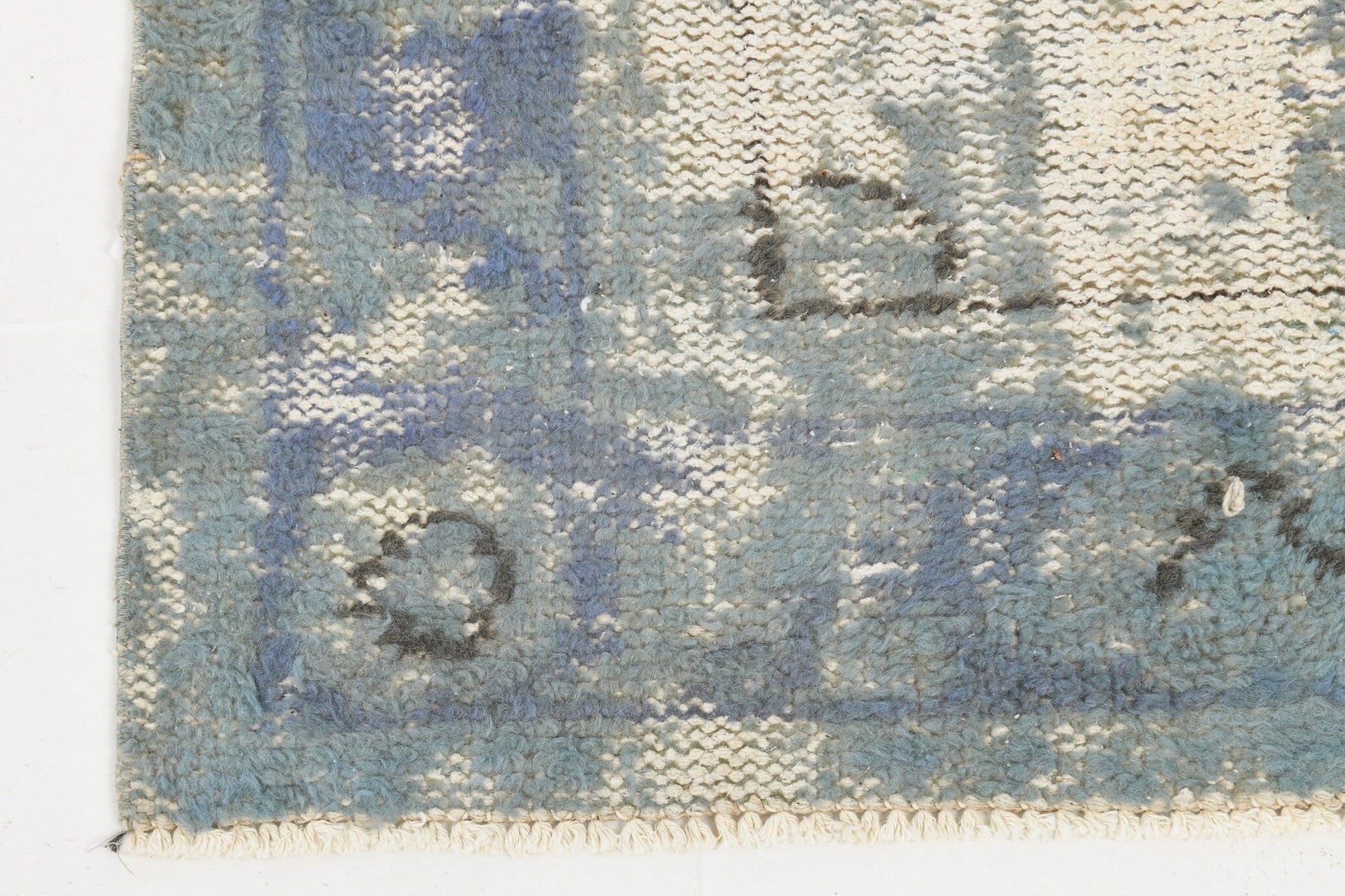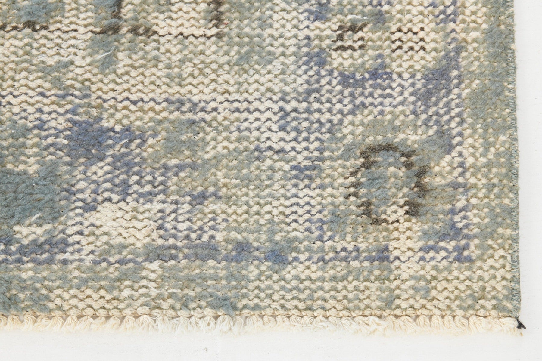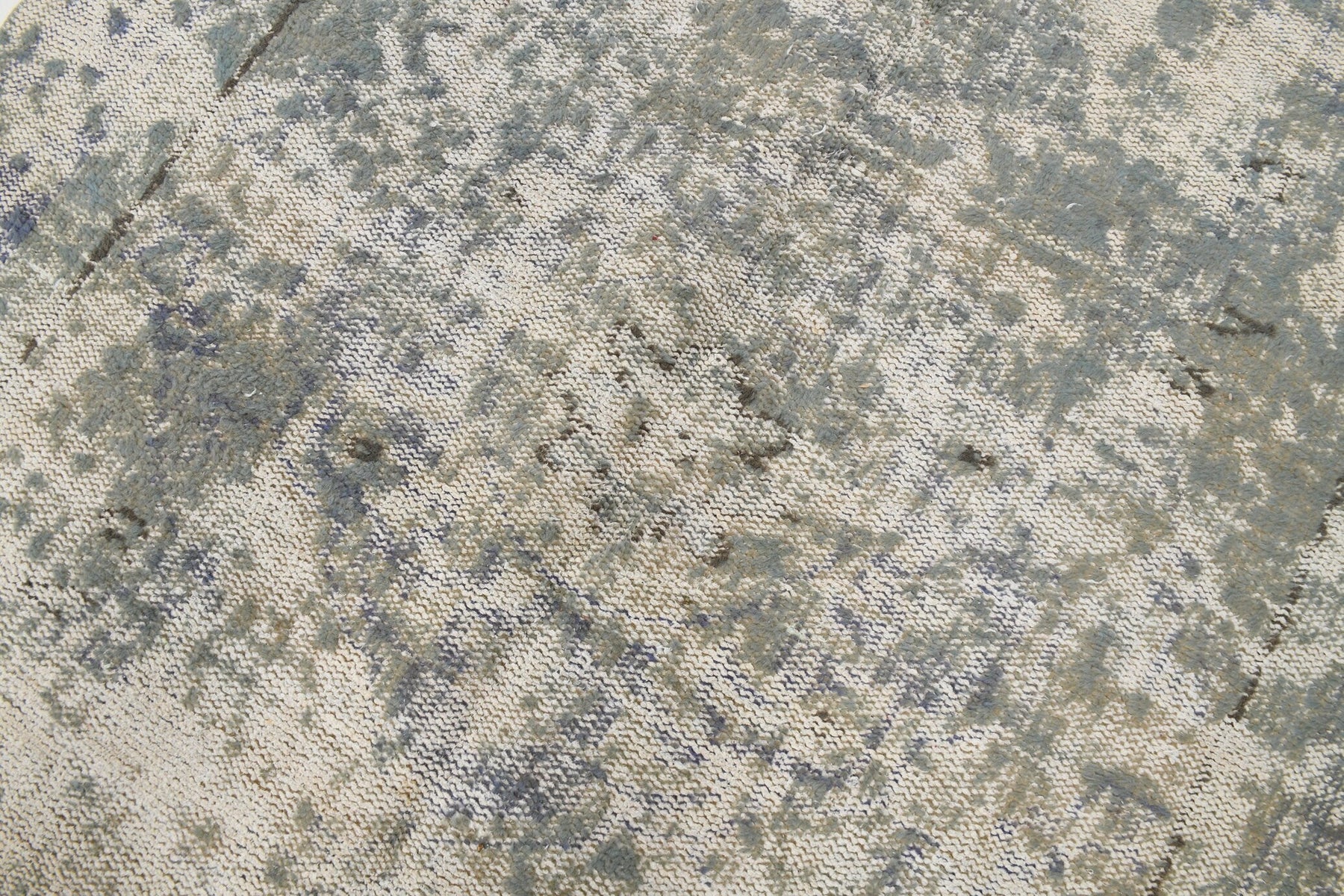 Pattern: The rug has an abstract and distressed design, with uneven textures and subtle variations in color.