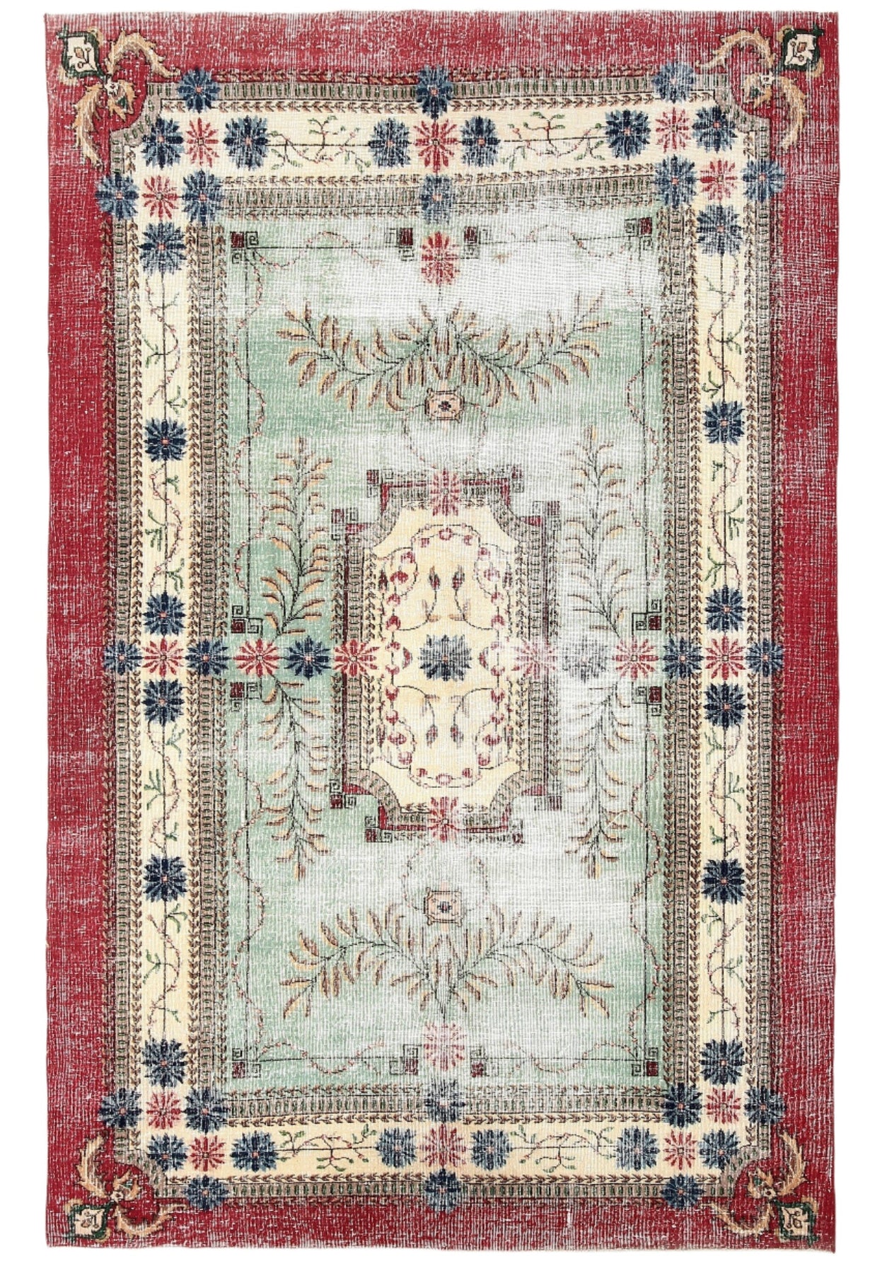 Turkish Vintage Rug 7'1" x 10'12" ft Red Green
