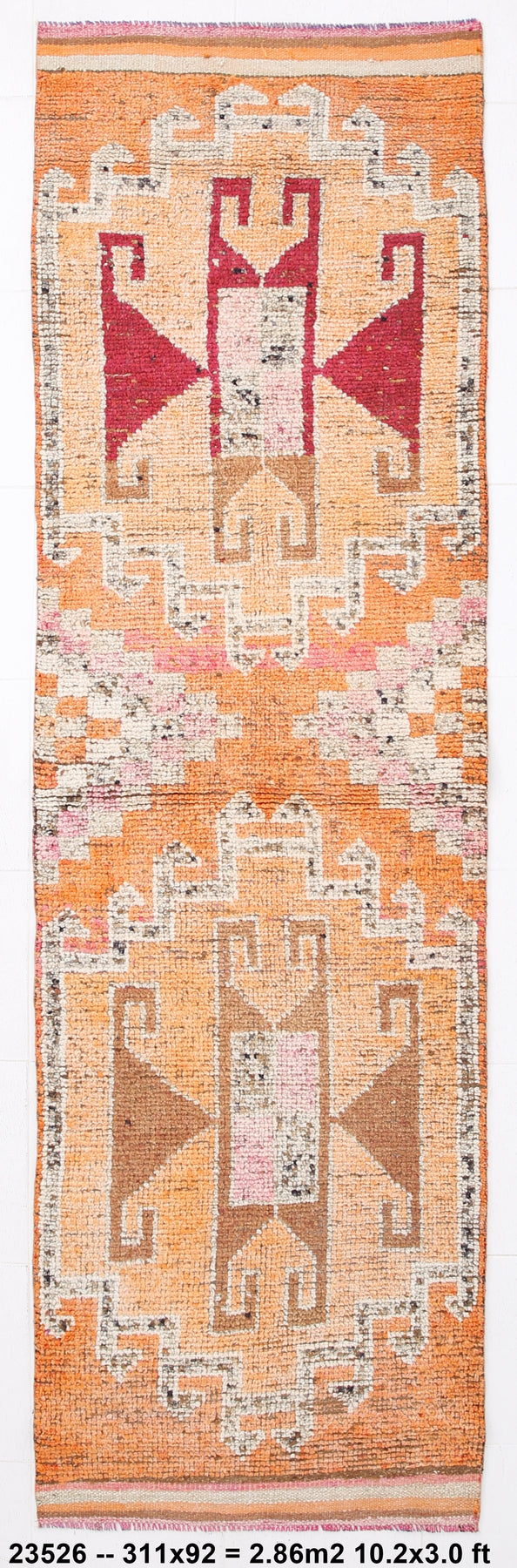 This is a hand-made, one of a kind Vintage Herki Runner Rug. It is meticulously crafted using the Hand Knotted technique, ensuring durability and intricate patterns. It measures 3'0" x 10'2" ft size (92 x 311 cm size) and is made of %50 Wool - %50 Cotton. Its origin is the Eastern Anatolia region and Estimated to have been produced between 1960 - 1970. Washed, cleaned, well-formed, and ready for use.