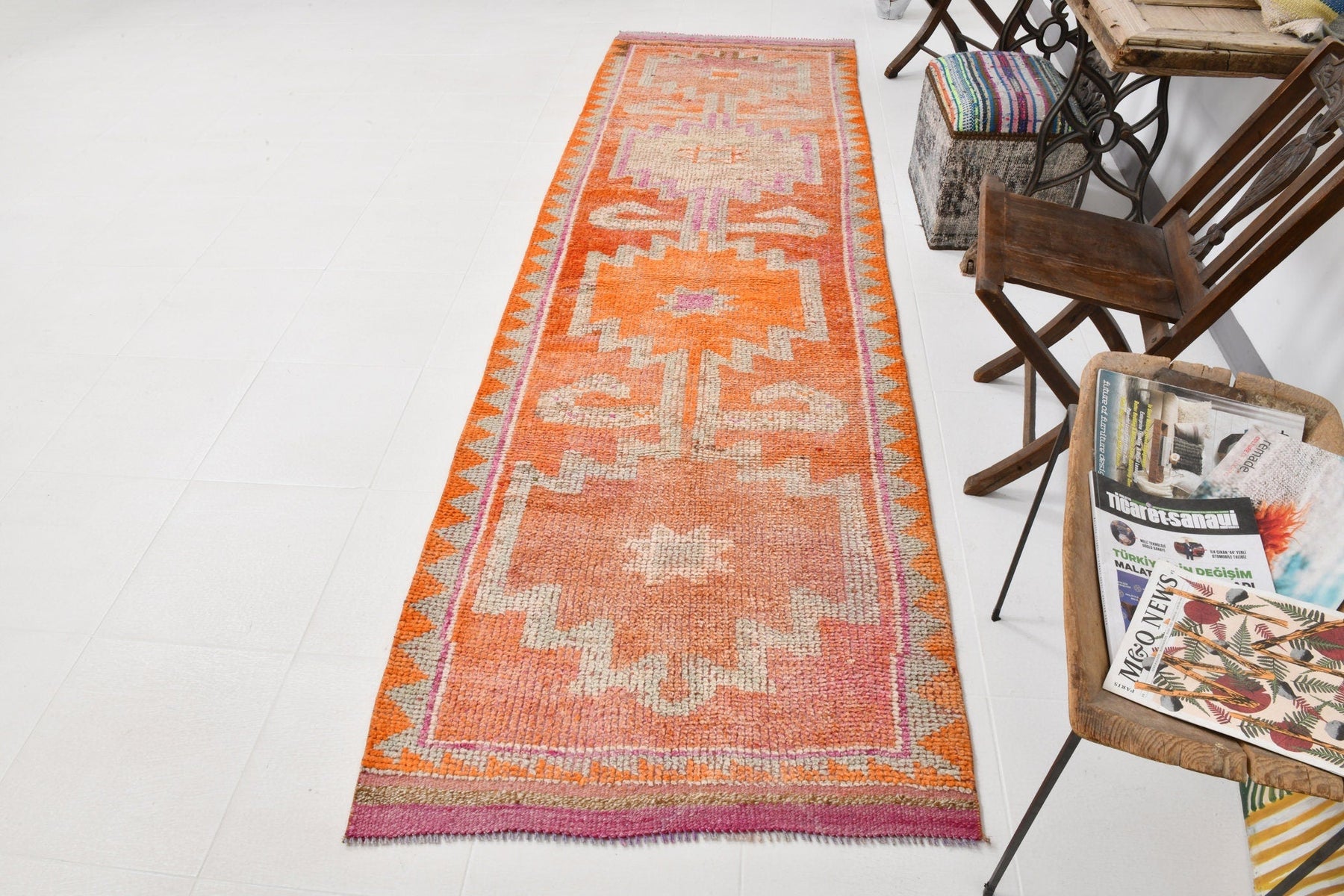 This is a hand-made, one of a kind Vintage Herki Runner Rug. It is meticulously crafted using the Hand Knotted technique, ensuring durability and intricate patterns. It measures 3'4" x 11'1" ft size (101 x 337 cm size) and is made of %50 Wool - %50 Cotton. Its origin is the Eastern Anatolia region and Estimated to have been produced between 1960 - 1970. Washed, cleaned, well-formed, and ready for use.