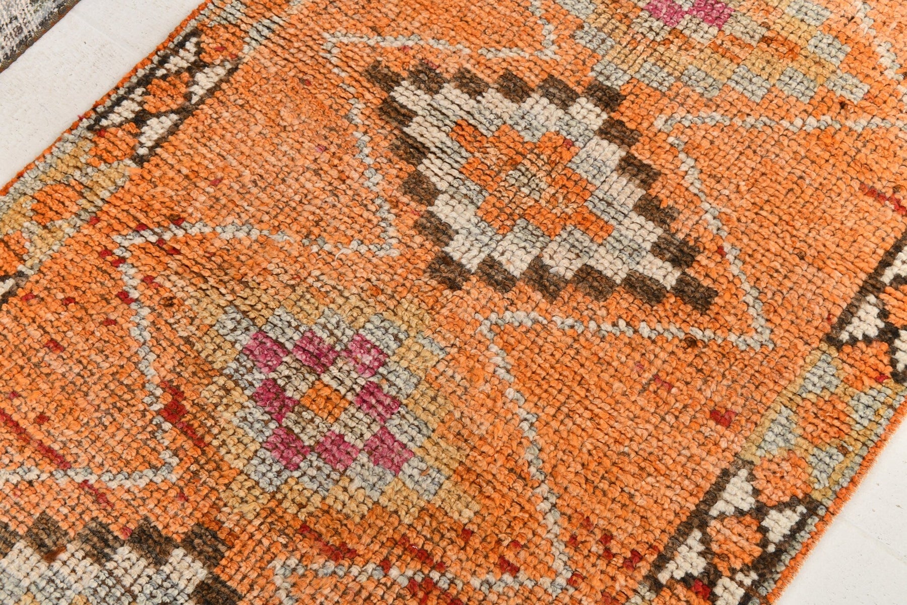 This is a hand-made, one of a kind Vintage Herki Runner Rug. It is meticulously crafted using the Hand Knotted technique, ensuring durability and intricate patterns. It measures 2'9" x 11'5" ft size (84 x 347 cm size) and is made of %50 Wool - %50 Cotton. Its origin is the Eastern Anatolia region and Estimated to have been produced between 1960 - 1970. Washed, cleaned, well-formed, and ready for use.