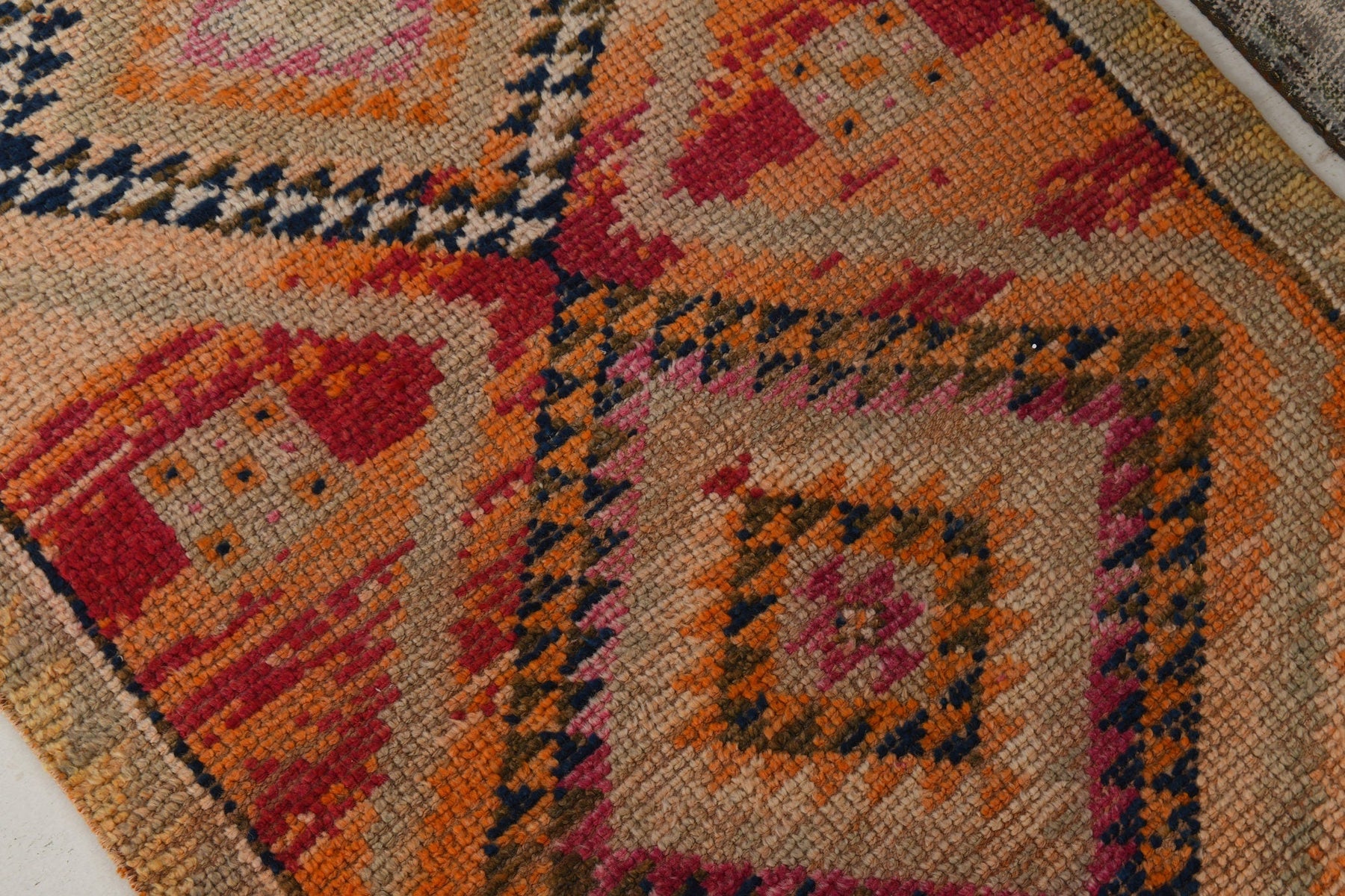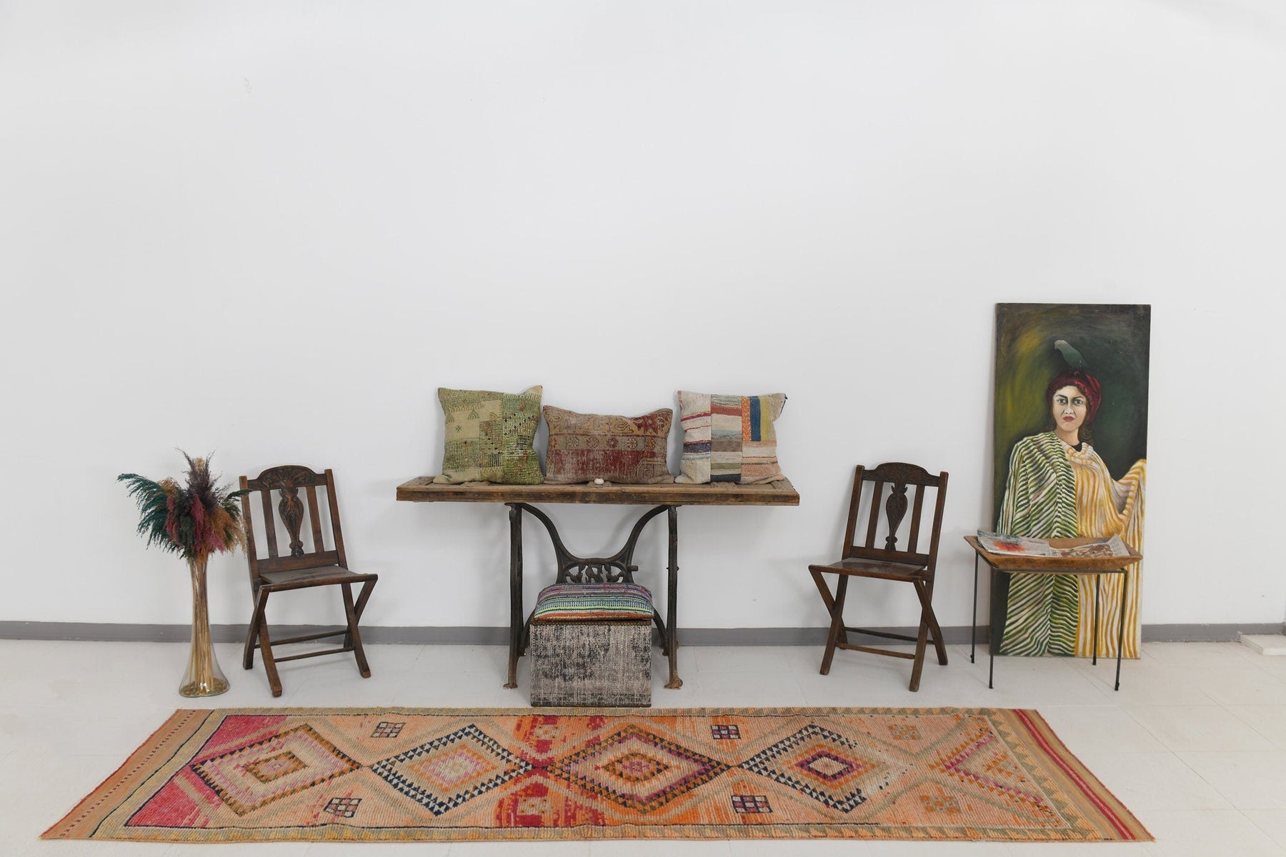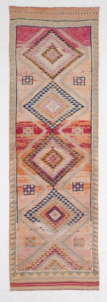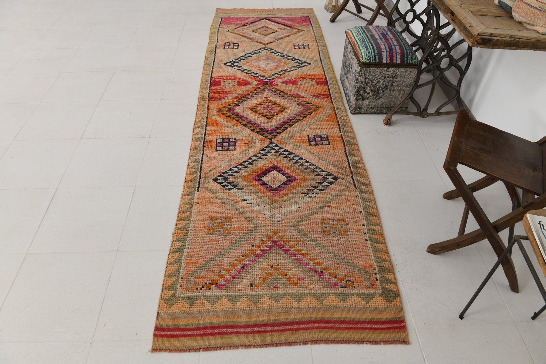 This is a hand-made, one of a kind Vintage Herki Runner Rug. It is meticulously crafted using the Hand Knotted technique, ensuring durability and intricate patterns. It measures 3'2" x 10'8" ft size (97 x 325 cm size) and is made of %50 Wool - %50 Cotton. Its origin is the Eastern Anatolia region and Estimated to have been produced between 1960 - 1970. Washed, cleaned, well-formed, and ready for use.