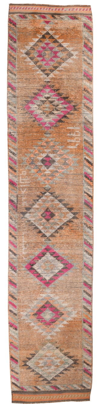 This is a hand-made, one of a kind Vintage Herki Runner Rug. It is meticulously crafted using the Hand Knotted technique, ensuring durability and intricate patterns. It measures 2'8" x 12'6" ft size (82 x 382 cm size) and is made of %50 Wool - %50 Cotton. Its origin is the Eastern Anatolia region and Estimated to have been produced between 1960 - 1970. Washed, cleaned, well-formed, and ready for use.