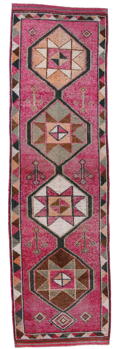 Vintage Herki Runner Rug 3'4" x 11'7" ft