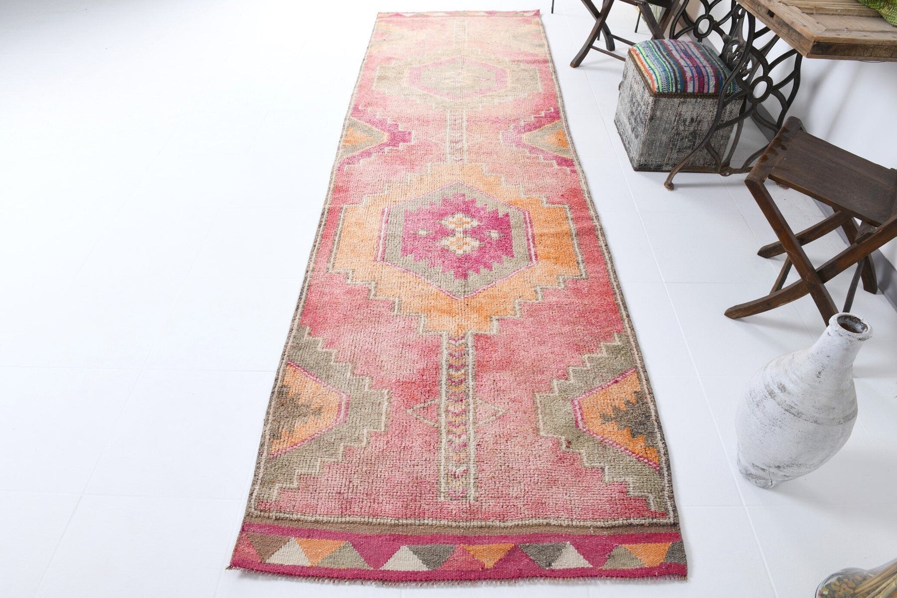 Each vintage rug undergoes meticulous inspection, professional cleaning, and quality preparation before shipping. Our experienced craftsmen ensure every piece meets our standards. Rugs are then carefully wrapped with protective materials and packaged to prevent damage during international transit, ensuring they arrive in pristine condition ready for immediate use.