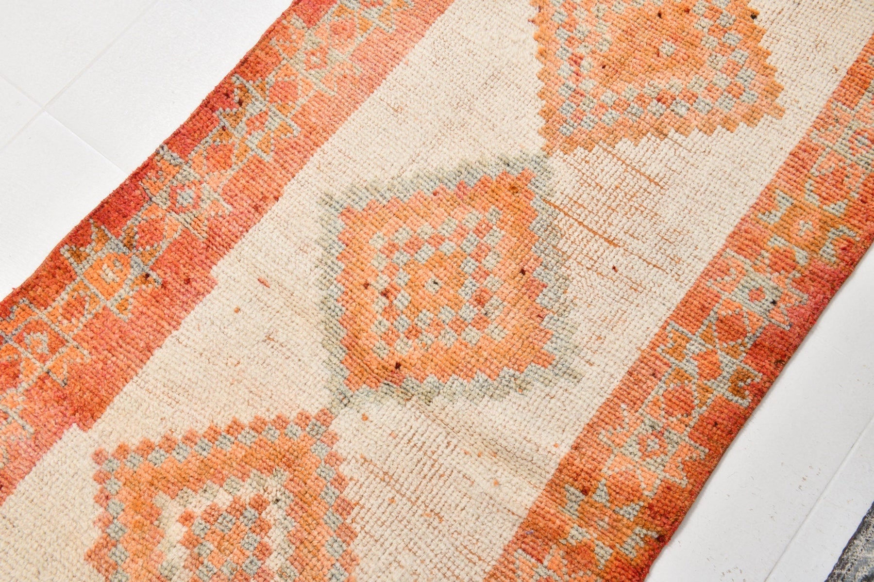 This is a hand-made, one of a kind Vintage Herki Runner Rug. It is meticulously crafted using the Hand Knotted technique, ensuring durability and intricate patterns. It measures 2'12" x 12'2" ft size (91 x 371 cm size) and is made of %50 Wool - %50 Cotton. Its origin is the Eastern Anatolia region and Estimated to have been produced between 1960 - 1970. Washed, cleaned, well-formed, and ready for use.