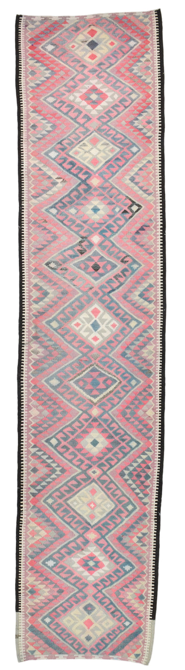 Vintage Anatolian Kilim Runner, Geometric, 2'9" x 12'6" ft