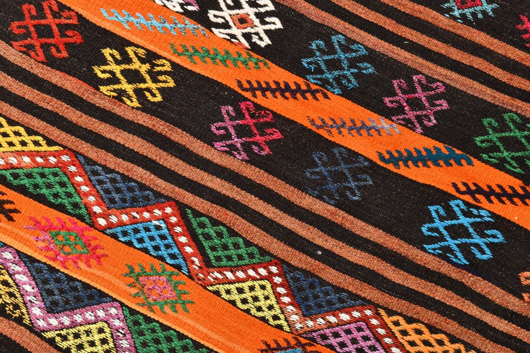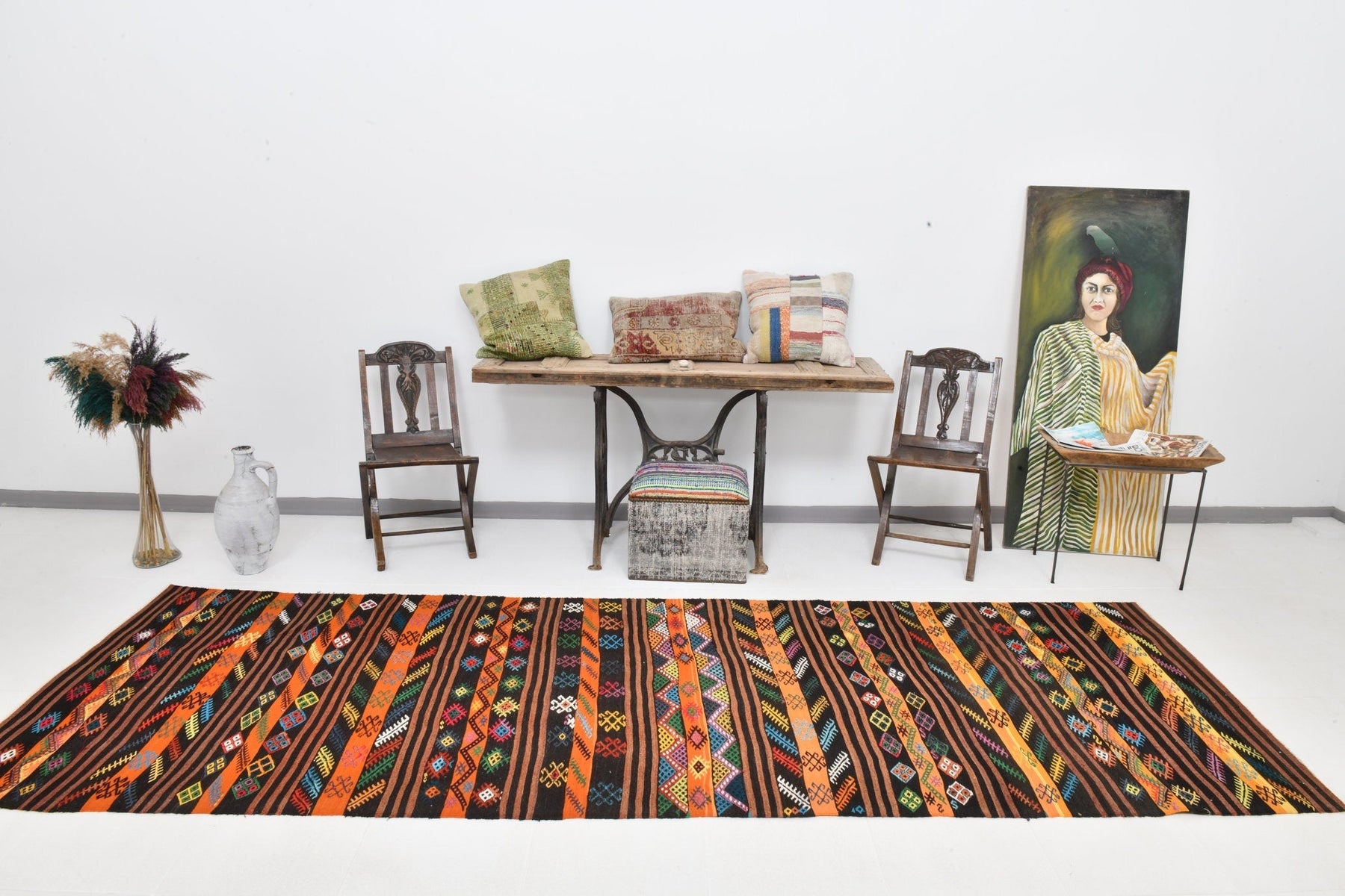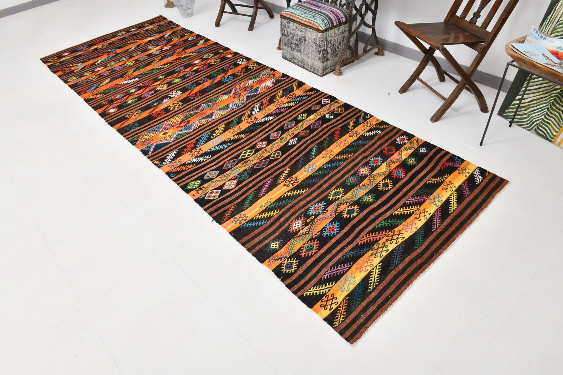 This is a hand-made, one of a kind Vintage Kilim Anatolian. It is created using the Hand Woven technique, offering a unique texture and design. It measures 4'1" x 12'2" ft size (124 x 370 cm size) and is made of %80 Wool - %20 Cotton. Its origin is all regions of Anatolia and Estimated to have been produced between 1960 - 1970. Washed, cleaned, well-formed, and ready for use.