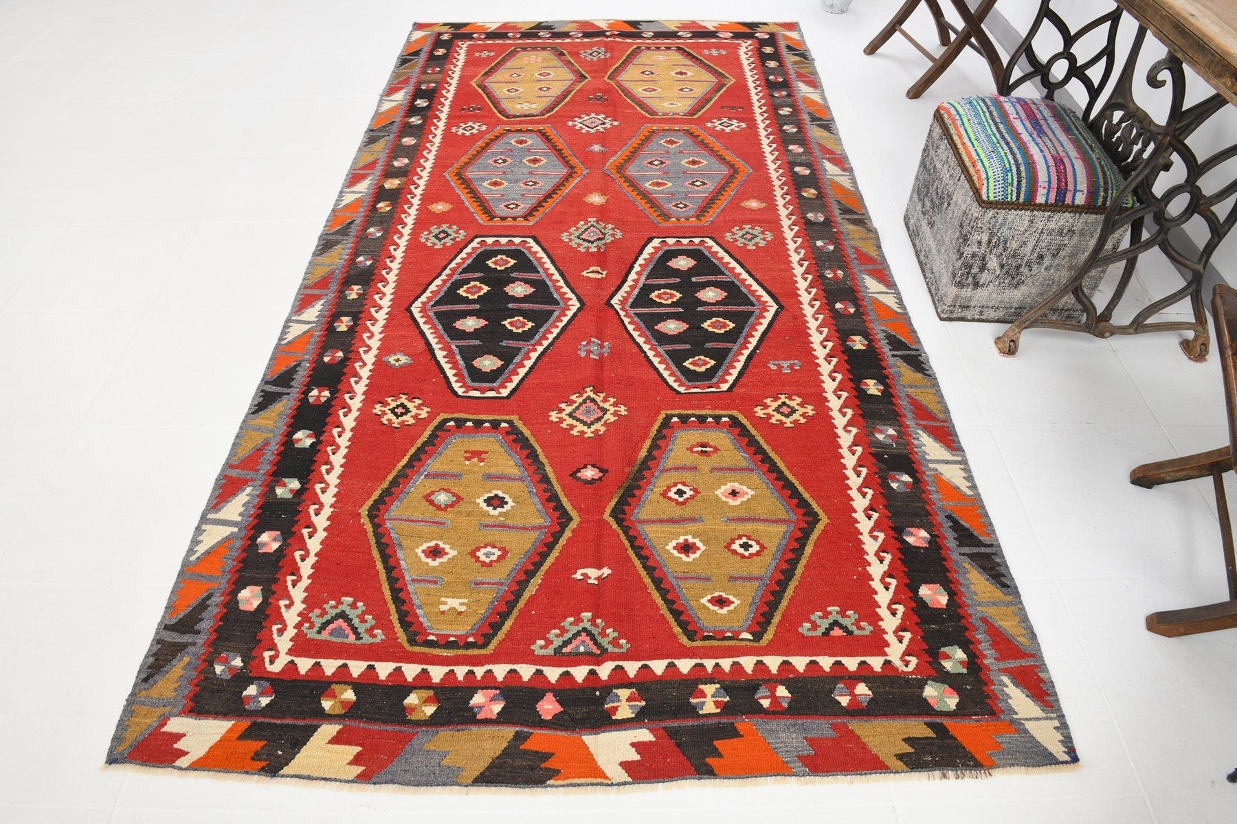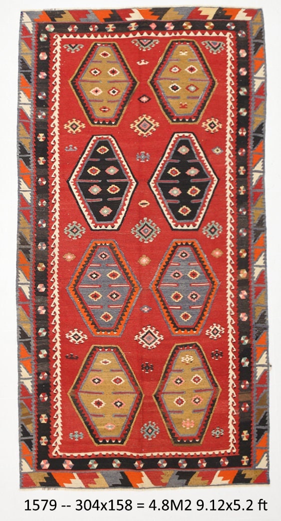 This is a hand-made, one of a kind Vintage Kilim Anatolian. It is created using the Hand Woven technique, offering a unique texture and design. It measures 5'2" x 9'12" ft size (158 x 304 cm size) and is made of %80 Wool - %20 Cotton. Its origin is all regions of Anatolia and Estimated to have been produced between 1960 - 1970. Washed, cleaned, well-formed, and ready for use.