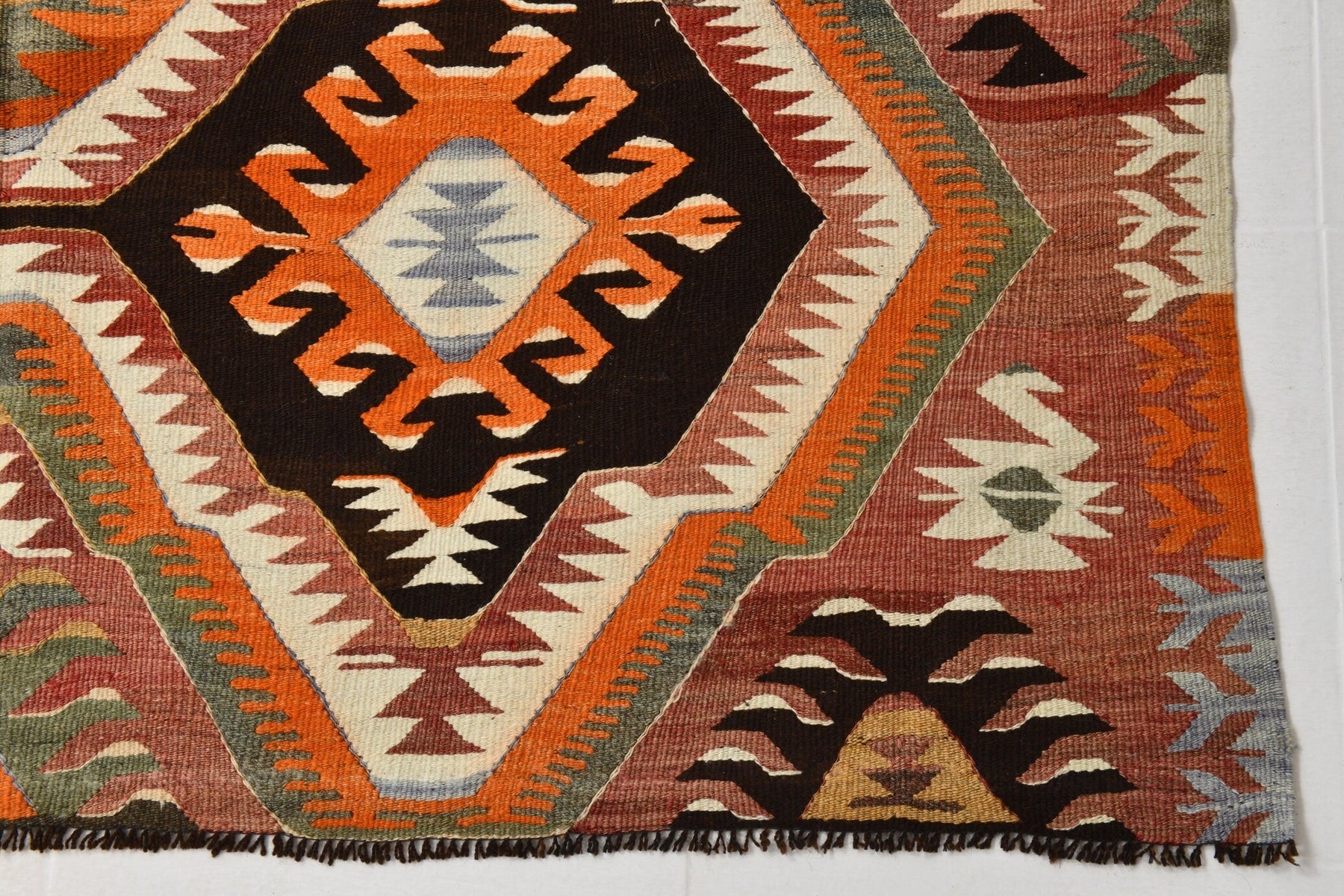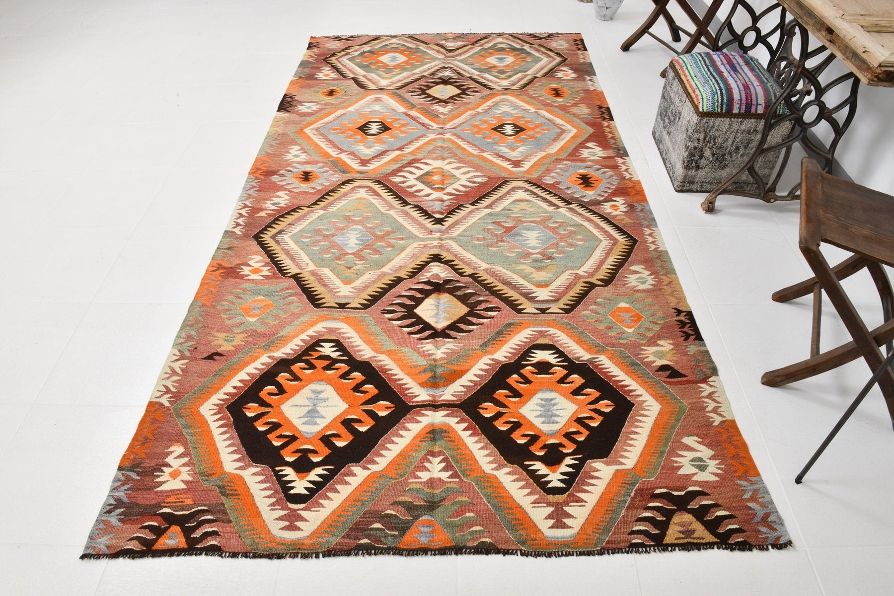 This is a hand-made, one of a kind Vintage Kilim Anatolian. It is created using the Hand Woven technique, offering a unique texture and design. It measures 5'3" x 10'2" ft size (160 x 309 cm size) and is made of %80 Wool - %20 Cotton. Its origin is all regions of Anatolia and Estimated to have been produced between 1960 - 1970. Washed, cleaned, well-formed, and ready for use.