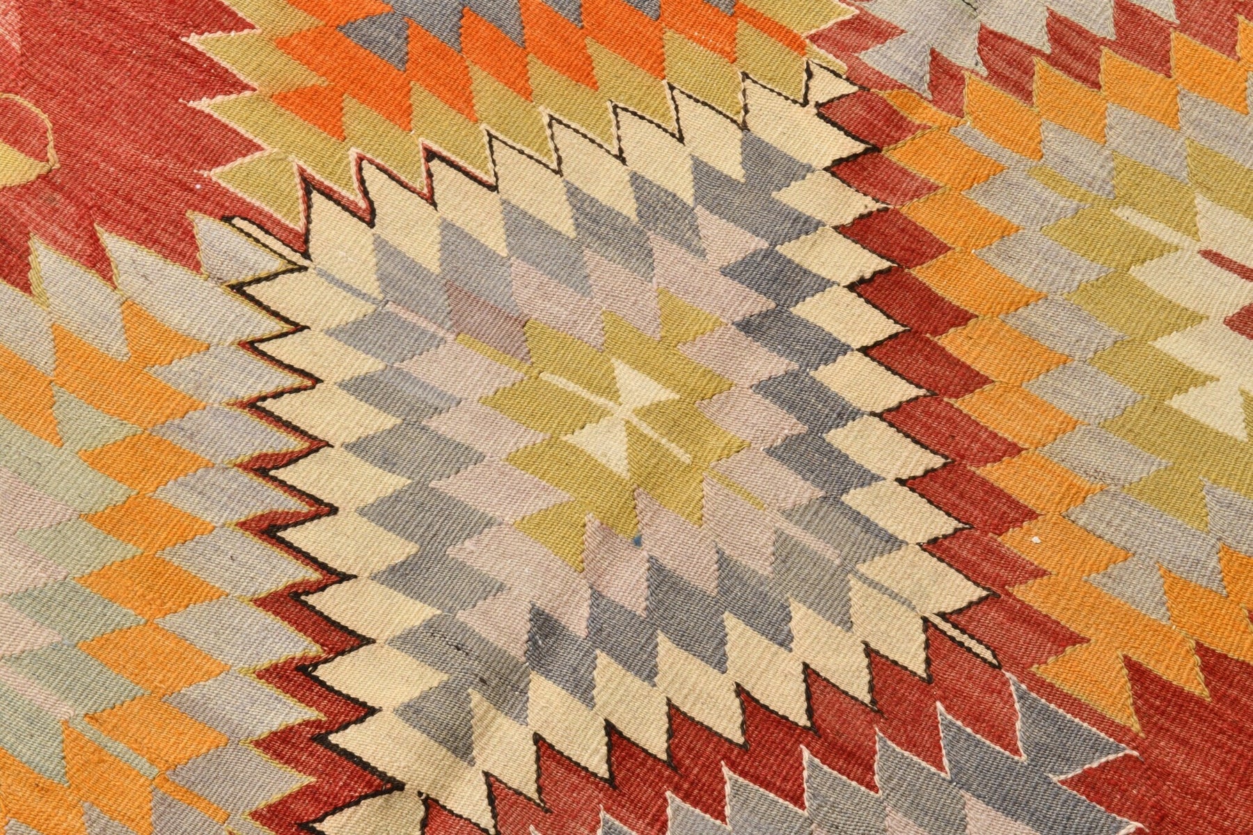 This is a hand-made, one of a kind Vintage Kilim Anatolian. It is created using the Hand Woven technique, offering a unique texture and design. It measures 5'5" x 8'12" ft size (164 x 274 cm size) and is made of %80 Wool - %20 Cotton. Its origin is all regions of Anatolia and Estimated to have been produced between 1960 - 1970. Washed, cleaned, well-formed, and ready for use.