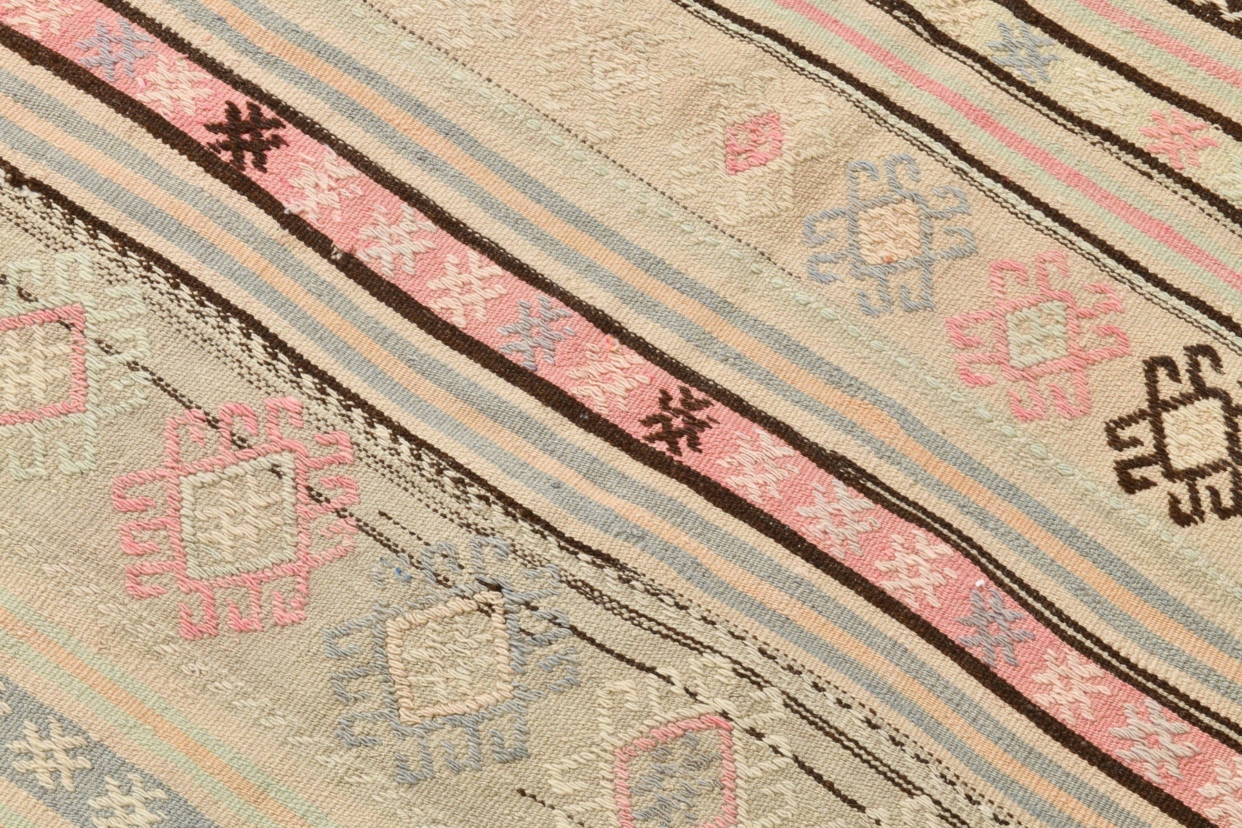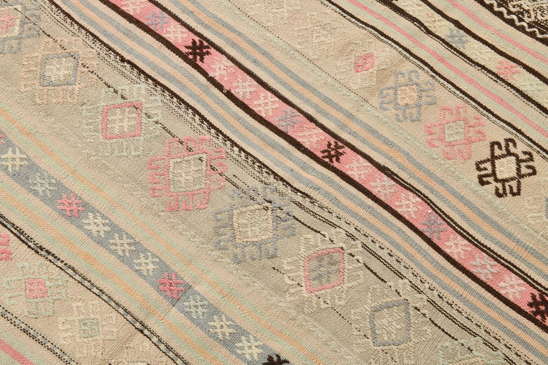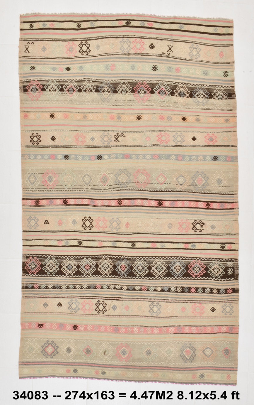This is a hand-made, one of a kind Vintage Kilim Anatolian. It is created using the Hand Woven technique, offering a unique texture and design. It measures 5'4" x 8'12" ft size (163 x 274 cm size) and is made of %80 Wool - %20 Cotton. Its origin is all regions of Anatolia and Estimated to have been produced between 1960 - 1970. Washed, cleaned, well-formed, and ready for use.