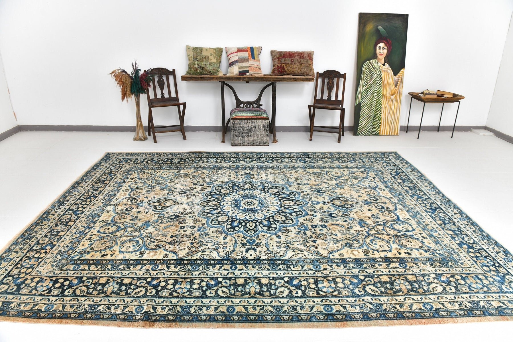 This rug would make a stunning centerpiece for a variety of interior design styles, from traditional to modern. To create a truly luxurious and inviting space, consider pairing this rug with the following elements: