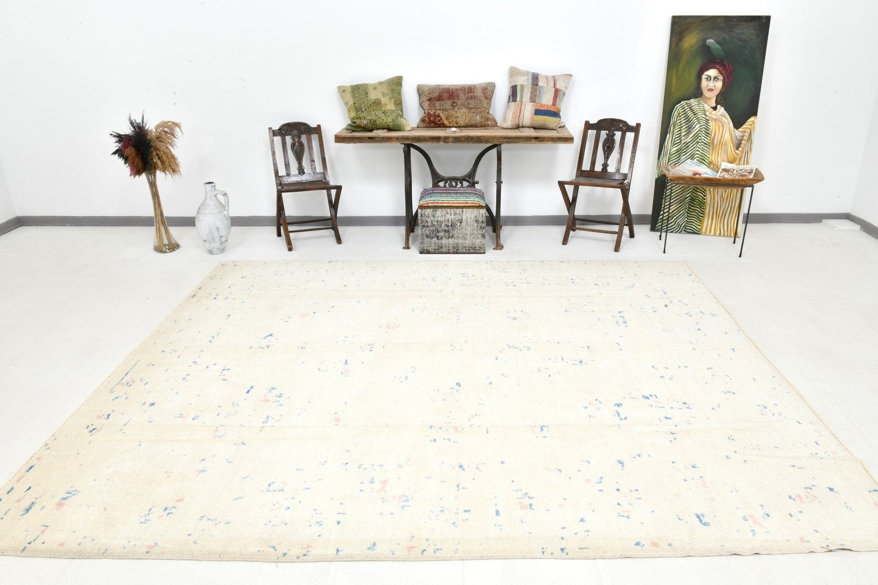 This is a hand-made, one of a kind Vintage Rug Oushak. It is meticulously crafted using the Hand Knotted technique, ensuring durability and intricate patterns. It measures 8'6" x 10'2" ft size (260 x 311 cm size) and is made of %50 Wool - %50 Cotton. Its origin is the Uşak region of Anatolia and Estimated to have been produced between 1960 - 1970. Washed, cleaned, well-formed, and ready for use.