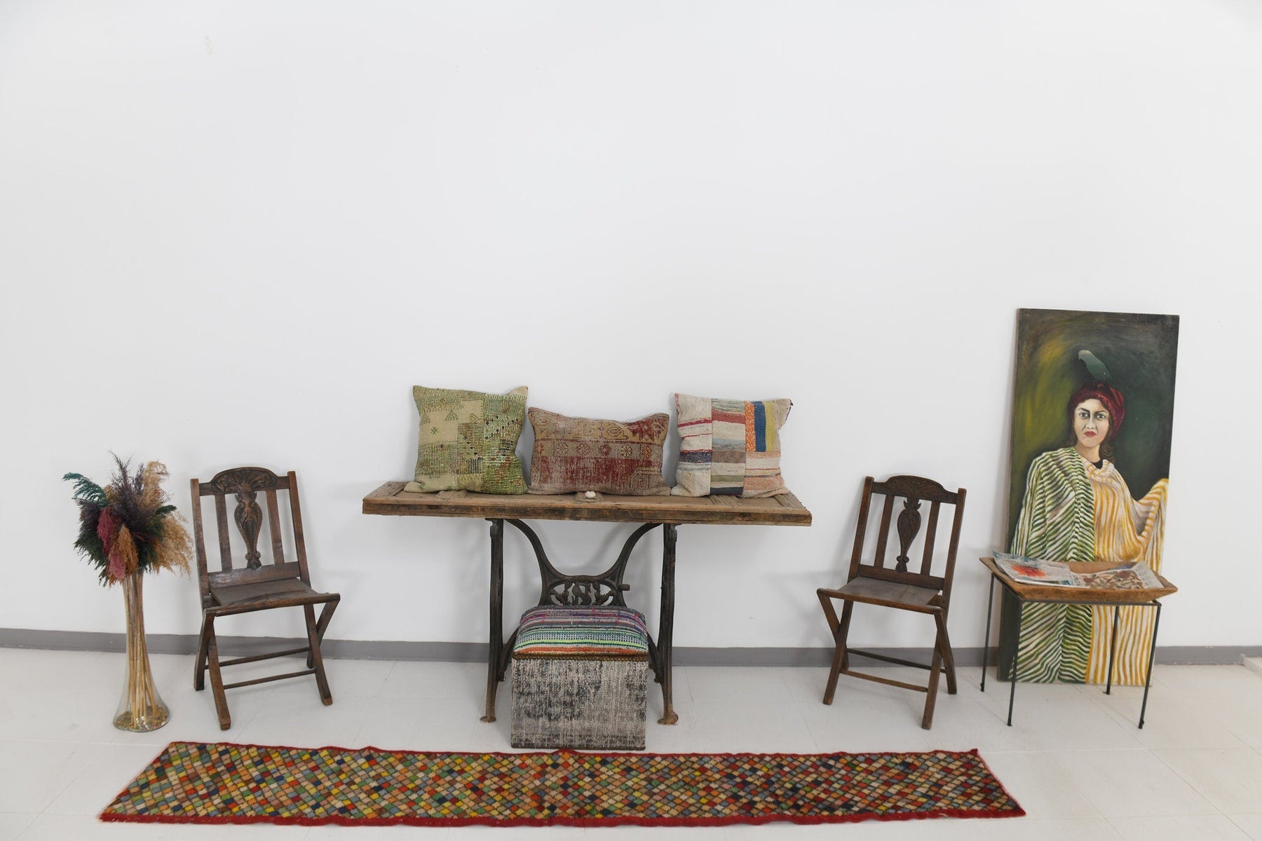 This is a hand-made, one of a kind Vintage Runner Rug. It is meticulously crafted using the Hand Knotted technique, ensuring durability and intricate patterns. It measures 1'6" x 9'2" ft size (46 x 280 cm size) and is made of %50 Wool - %50 Cotton. Its origin is all regions of Anatolia and Estimated to have been produced between 1960 - 1970. Washed, cleaned, well-formed, and ready for use.