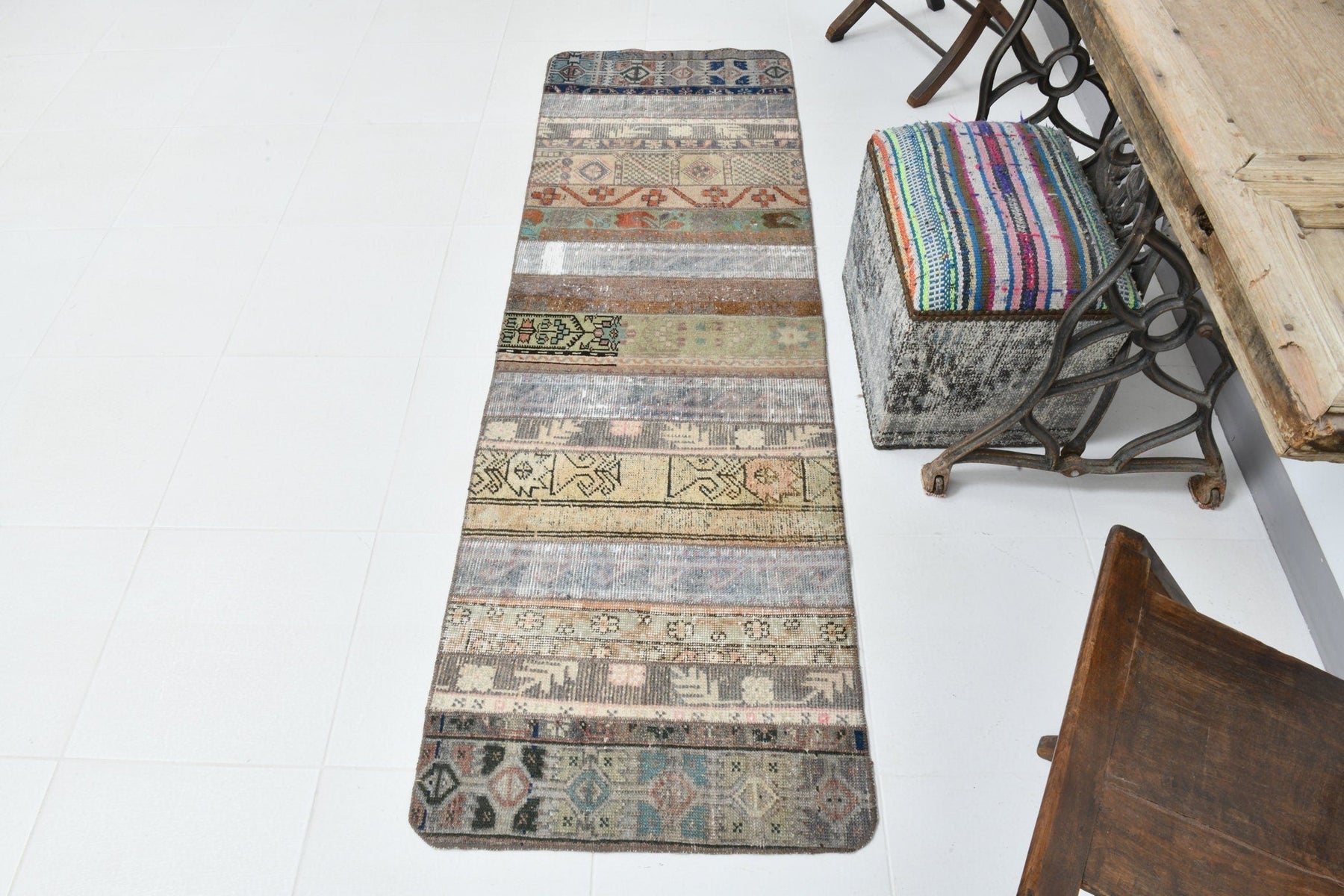 This is a hand-made, one of a kind Vintage Runner Rug. It is meticulously crafted using the Hand Knotted technique, ensuring durability and intricate patterns. It measures 2'2" x 6'10" ft size (66 x 208 cm size) and is made of %50 Wool - %50 Cotton. Its origin is all regions of Anatolia and Estimated to have been produced between 1960 - 1970. Washed, cleaned, well-formed, and ready for use.