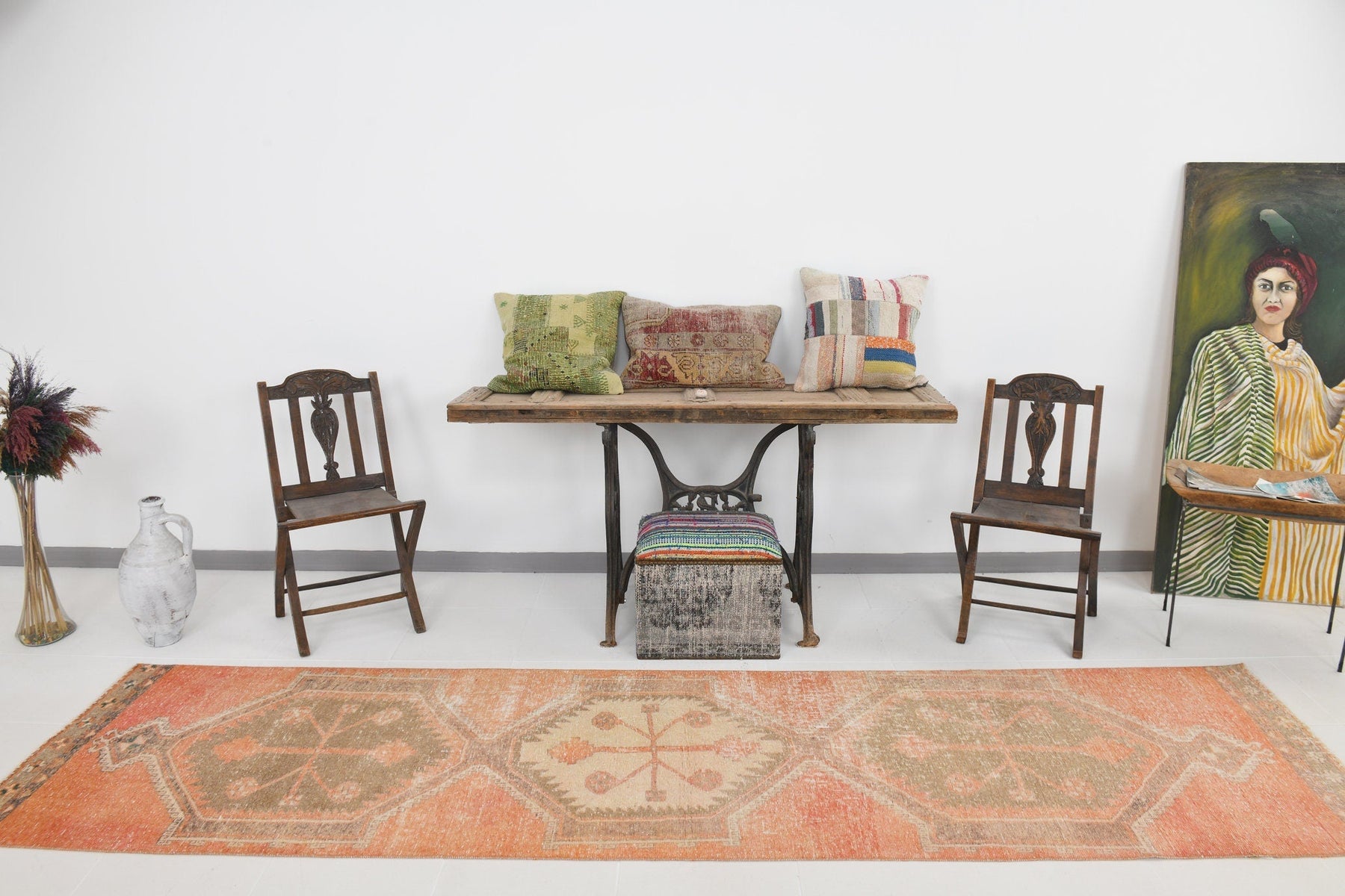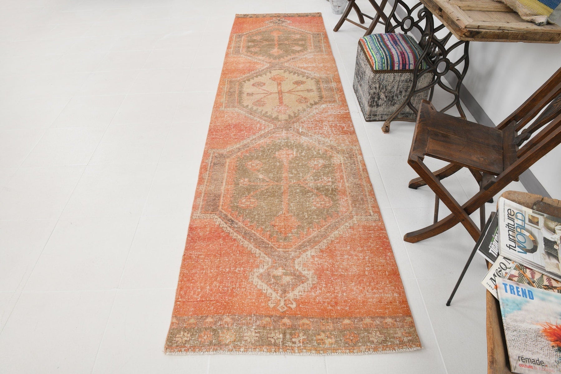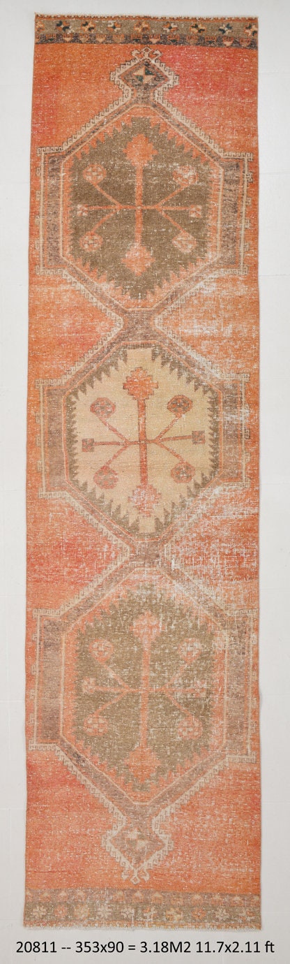 This is a hand-made, one of a kind Vintage Runner Rug. It is meticulously crafted using the Hand Knotted technique, ensuring durability and intricate patterns. It measures 2'11" x 11'7" ft size (90 x 353 cm size) and is made of %50 Wool - %50 Cotton. Its origin is all regions of Anatolia and Estimated to have been produced between 1960 - 1970. Washed, cleaned, well-formed, and ready for use.